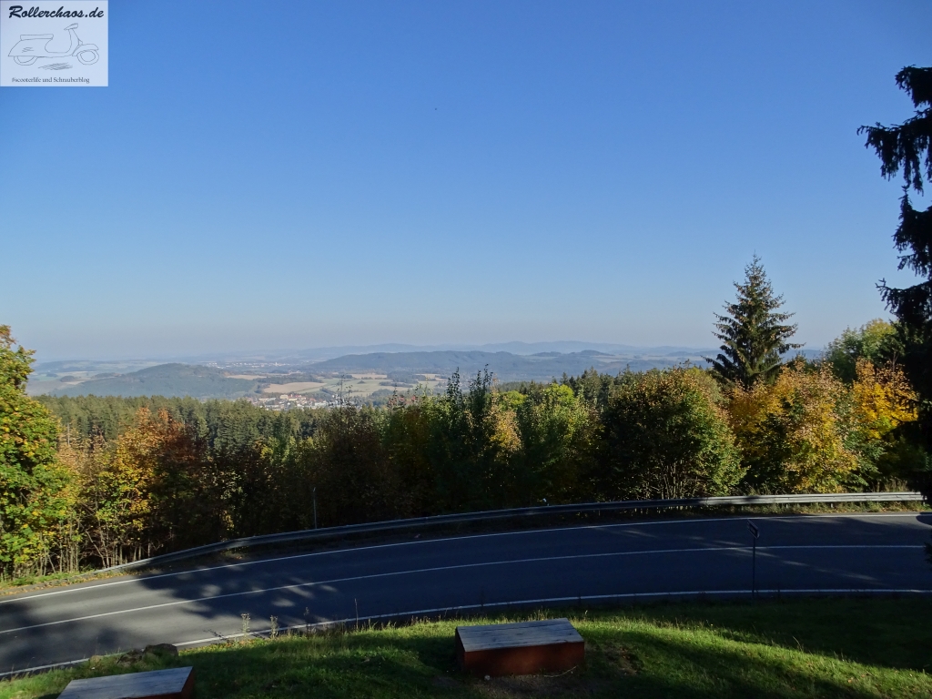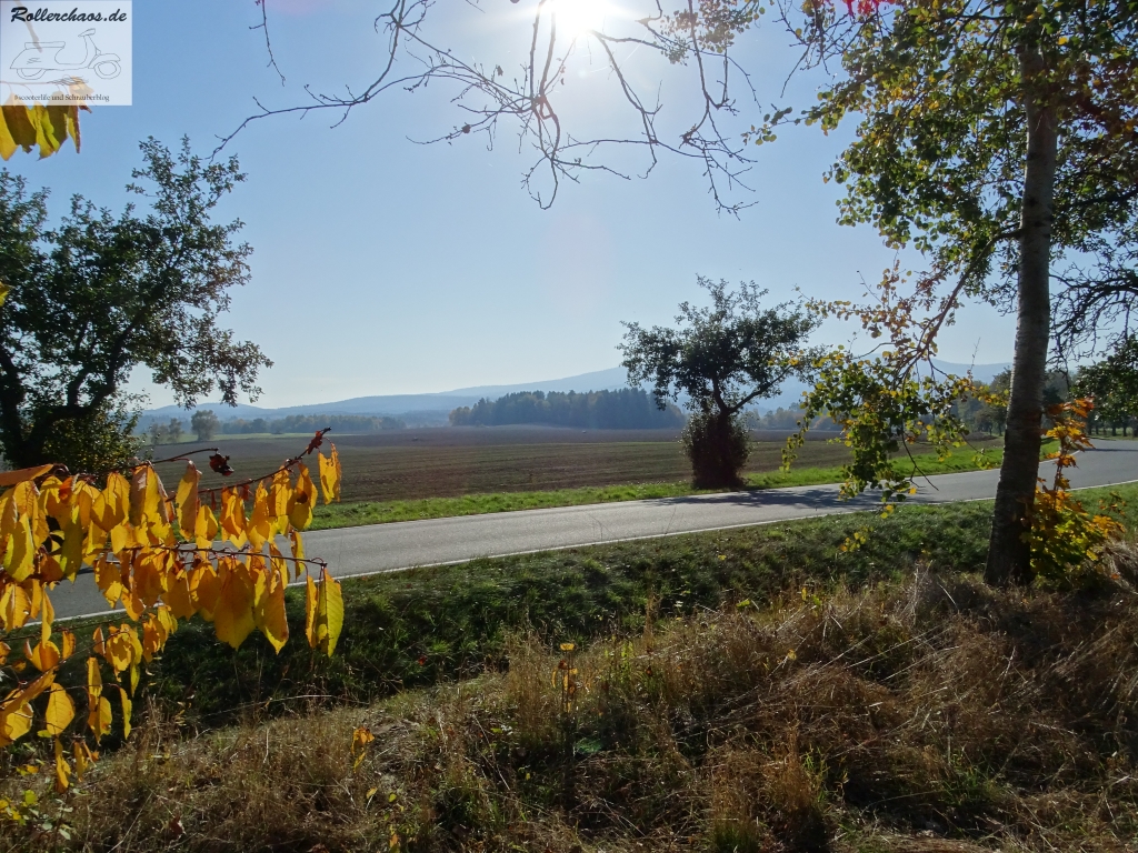 Über Chodov führt die Nebenstraße zum kleinen Grenzübergang bei Liskova quer durch eine traumhafte Herbstlandschaft.