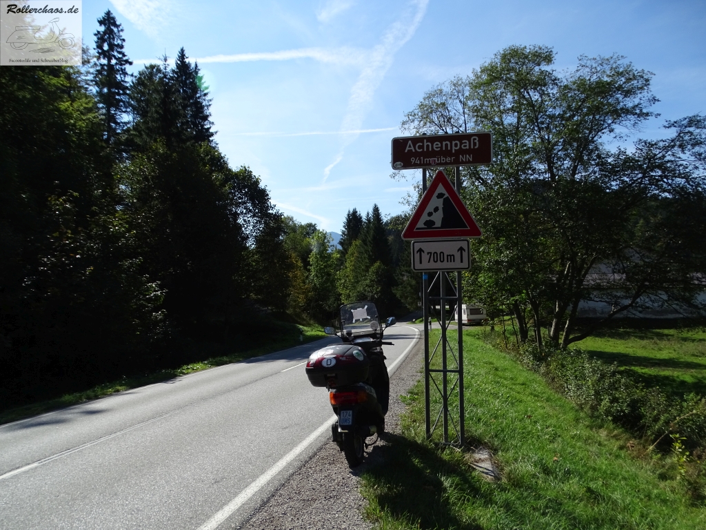 Von Wildbad Kreuth aus steigt die B307 dann in sanftem Serpentinenschwung immer weiter auf, bis sie am Achenpass auf 914m ihren Gipfelpunkt erreicht hat. Von hier aus geht es bergab, über die Grenze nach Österreich hinein und zum Achensee.