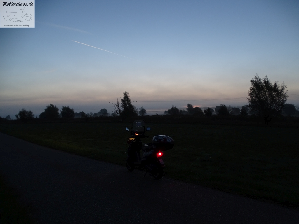 In der Domstadt angekommen beende ich den Tag an der selben Tankstelle, an der ich gegen dreiviertel sechs am Morgen den Tank gefüllt habe, hinter dem Tresen steht jetzt natürlich ein anderer Tankwart und die Uhr an der Wand hinter ihm zeigt kurz vor zehn am Abend. Der Zip steht draußen im kalten Neonlicht neben der Zapfsäule und sieht unverändert aus. Ein kleiner Stadtroller der bewiesen hat, dass er zu einer Tagesleistung von ziemlich genau 533km problemlos in der Lage ist.