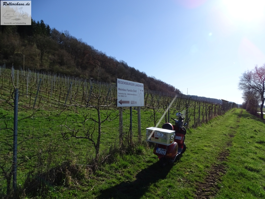 Von dort aus geht es bergab, hinunter ins Otterbachtal und bei Tegernheim wieder zurück nach Regensburg. Knapp 250 sind es heute geworden, eine schöne Tagestour mit dem Roller, quer durch ein Mittelgebirge und zwei Länder die heute mehr verbindet als trennt. Eine Grenzerfahrung der ganz besonders angenehmen Art.