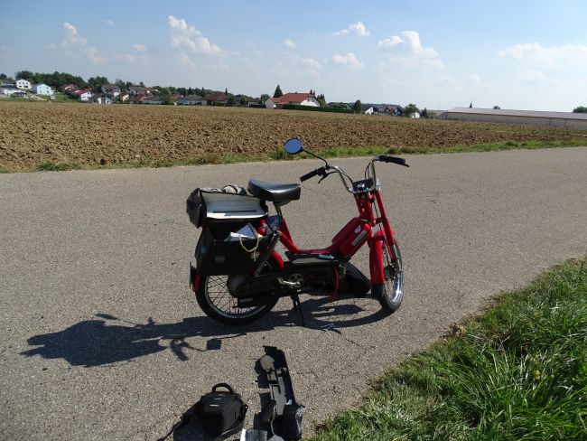 Hinter Kelheim steigt die Straße steil zum Bergfriedhof hinauf, bevor sie dann wieder nach Weltenburg hinab führt und dort auf die Donau trifft. Die Bergüberquerung stellte sich als erste Prüfung für das Moped heraus. Nur mit knapper Not schaffte das Fahrzeug die Steigung. Hier zeigte sich zum ersten Mal ein Problem, das mich heute noch wiederholt beschäftigen sollte.