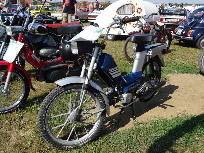 Mein Bravo wirkte etwas verloren zwischen einigen hochpreisigen Motorradklassikern. Dennoch zog auch das skurile Moped aus Italien viele Blicke auf sich.
