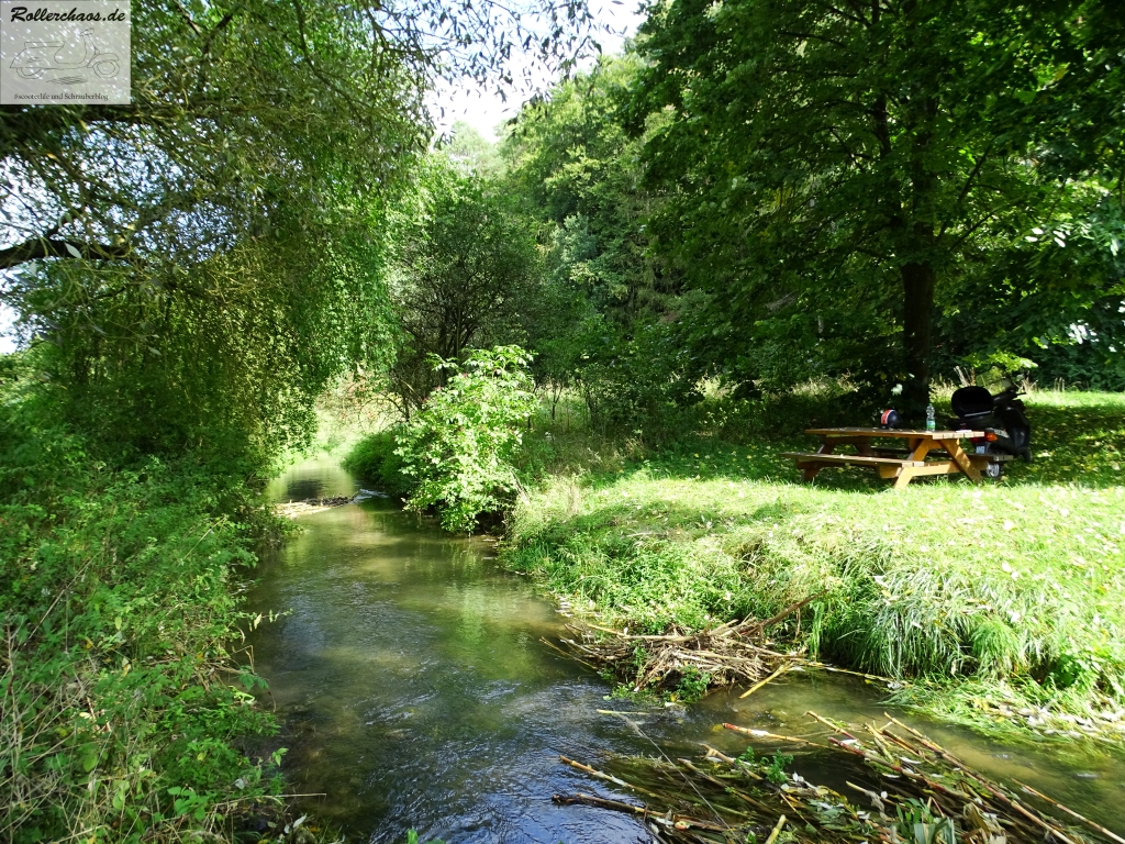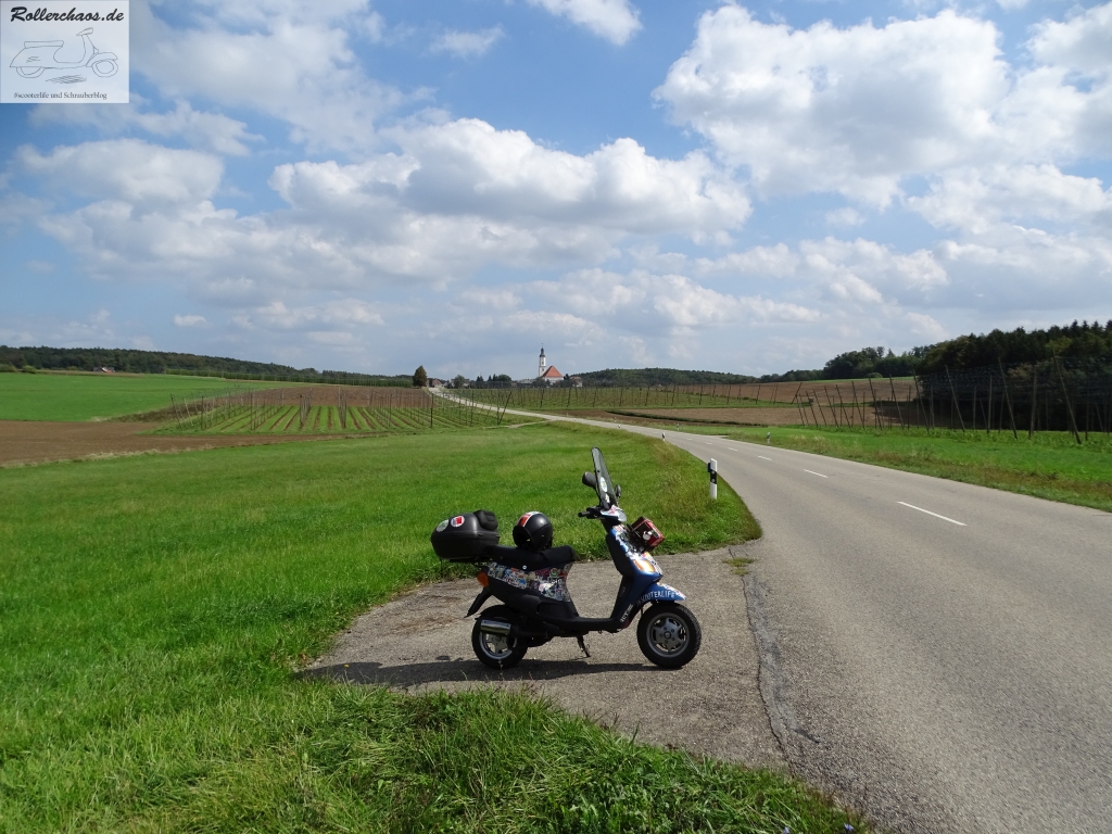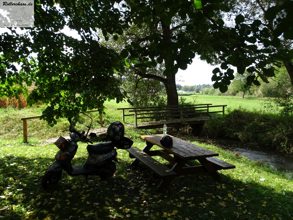 In Sachen Qualität kann das Restaurant mit dem Museum nicht ganz mithalten, trotzdem ging es nach dem Besuch dort in sehr guter Stimmung auf den Nachhauseweg. Dazu wählte ich die Route über das Schambachtal, als von Ingolstadt aus zunächst in Richtung Nordost und in einem Bogen um die Stadt herum. Auch hier gibt es wieder herrliche, wenig benutzte Landstraßen auf denen sich das Rollerfahren in seiner schönsten Form genießen lässt.
