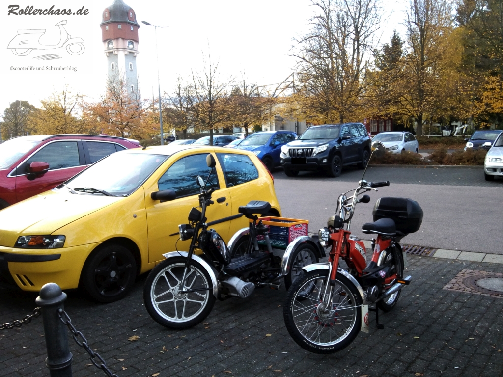 Grund dafür war der Kinostart des Filmes 25km/h, den wir uns gemeinsam ansehen wollten. Da es im Film um eine Mofareise geht, war eine stilechte Anreise zum Kino klar. Anfang November ist für mich aber schlicht nicht mehr die Jahreszeit, um über 300km mit der Puch zu fahren. Außerdem war es wichtig, dass ich das Auto dabei hatte. Dazu aber später noch mehr.