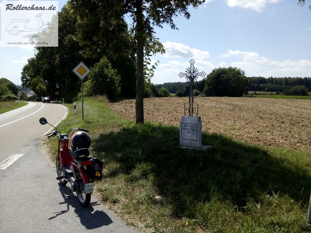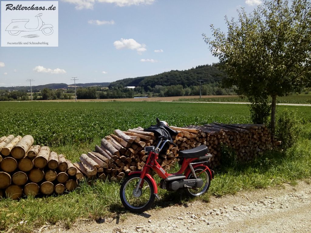 Der eigentliche Plan war ja, nach dem Mittagessen zur Werkstatt zu fahren und das Moped gegen einen der Roller zu tauschen. Zum Einen weil ich nächstes Wochenende nicht zu Hause bin und es nicht mag, wenn einer der Oldtimer offen herumsteht und zum Anderen weil ich aktuell keine alltagstaugliche Fuffi zu Hause habe. Aber warum nur den Nutzwert im Auge haben? Nirgendwo steht geschrieben, dass ich immer auf dem kürzesten Weg zur Werkstatt fahren muss. Eine langgezogene, genüsslich langsame Runde auf kleinsten Nebenstraßen hat ihren Wert.