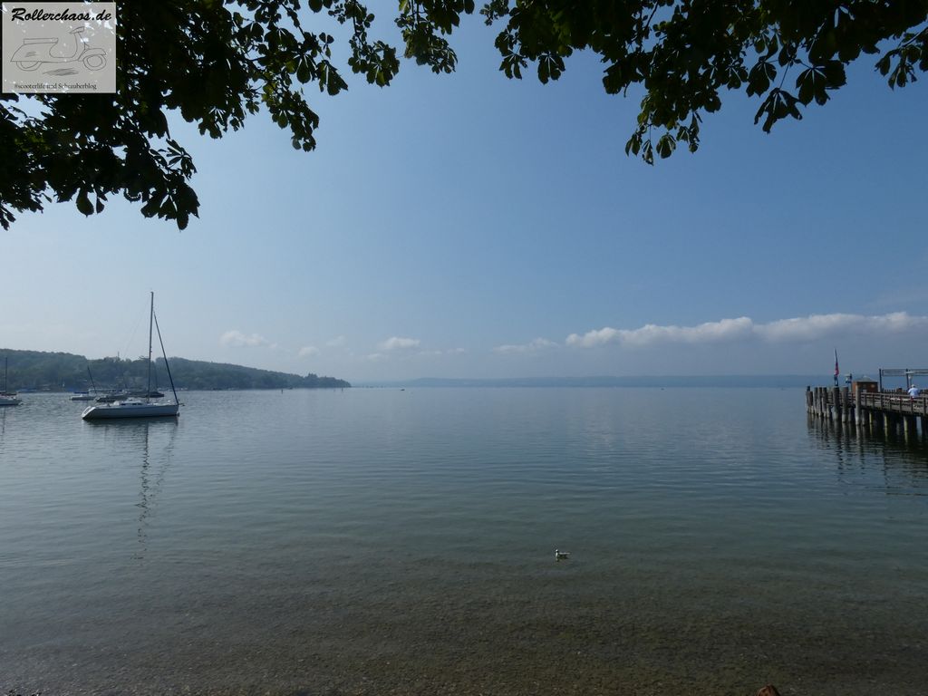 Vom Kloster aus fahre ich später weiter, zunächst um die Südspitze des Ammersees nach Dießen und dann am Westufer entlang nach Norden. Diese touristisch weniger erschlossene Seite des Sees ist wunderbar ruhig. Ein traumhaftes, weites Land mit lichten Wäldern die immer wieder den Blick auf den See freigeben.