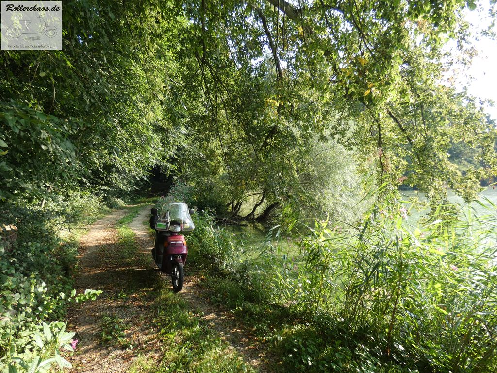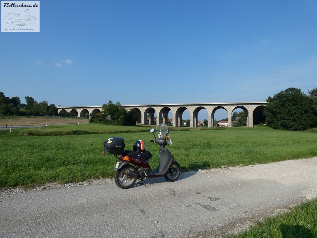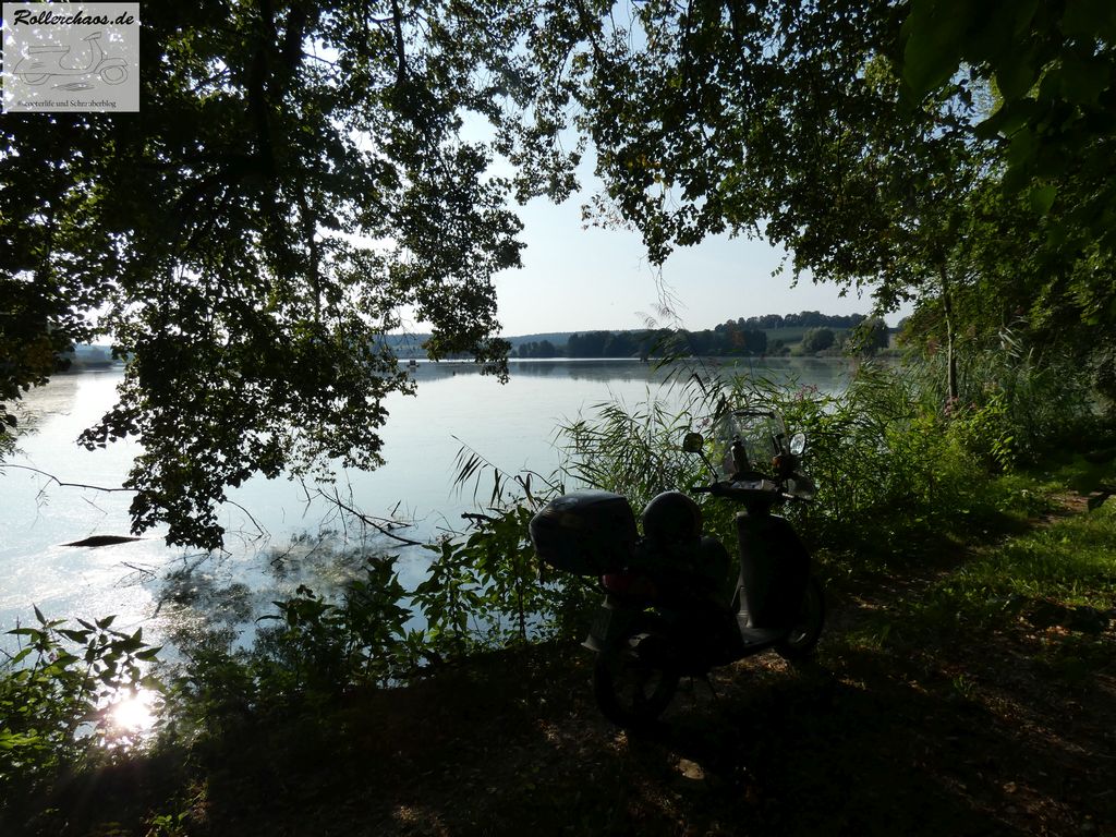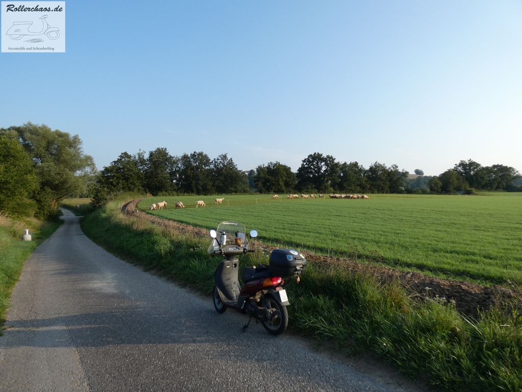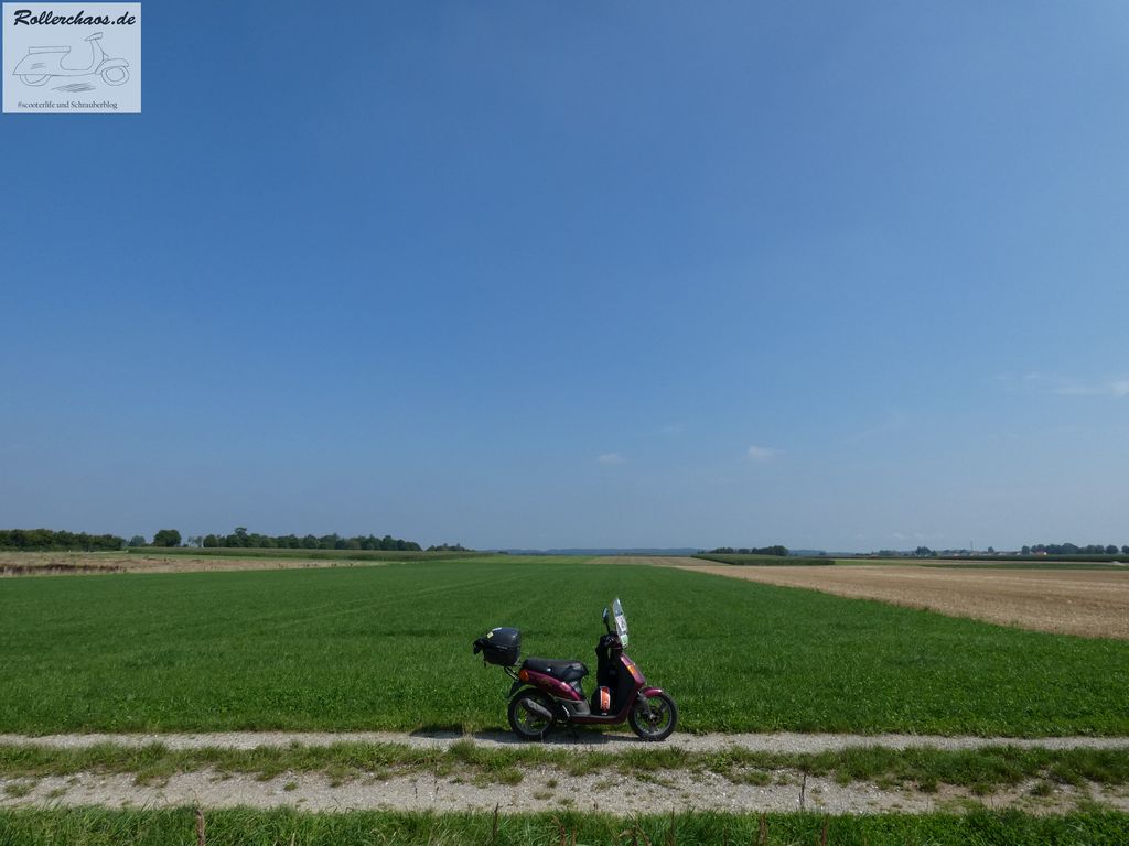 Eines der kleinen Nebenziele dieser Tour ist nämlich, die absolute Reichweite des Rollers zu testen. Seinen Tank hatte ich am Morgen kurz hinter Regensburg nochmal gefüllt und schon seit Andechs ruht die Tanknadel friedlich auf dem untersten Anschlag des Instruments. Doch der Roller spult fröhlich Kilometer um Kilometer ab.