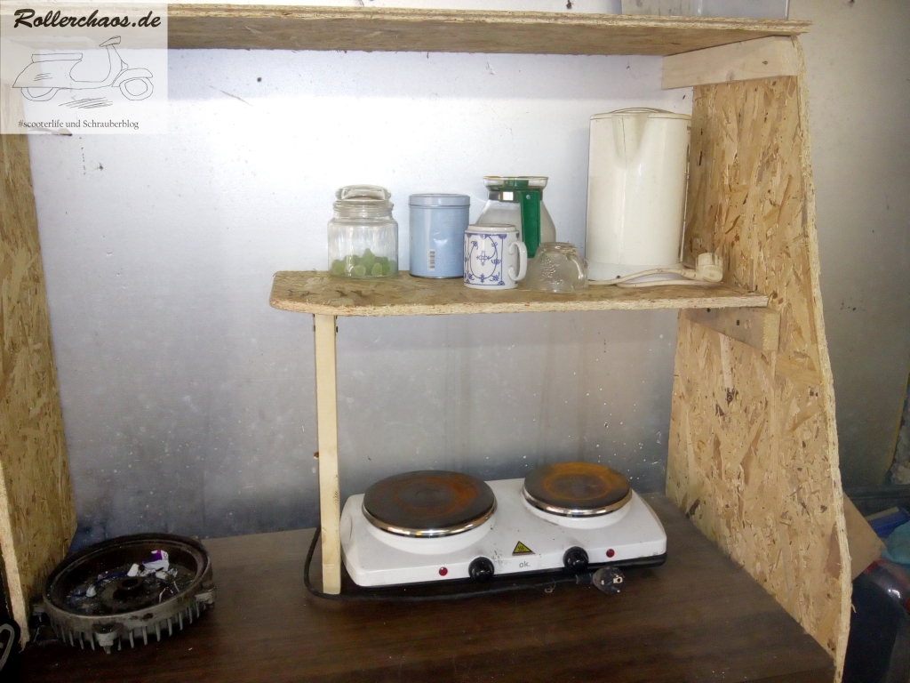In der alten Werksatt wuchs derweil das Chaos. Wo einst die Werkbank stand türmte sich der Krempel, aber so ist das nunmal bei einem so radikalen Eingriff.