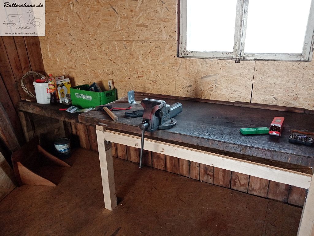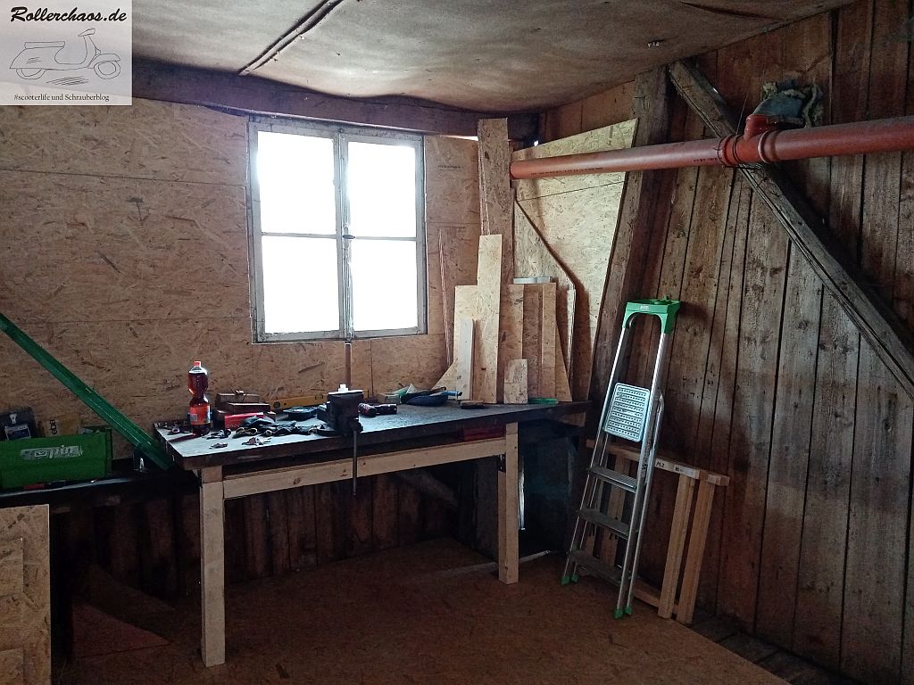 Die Idee mit den Regalen neben der Werkbank fand ich eigentlich gut