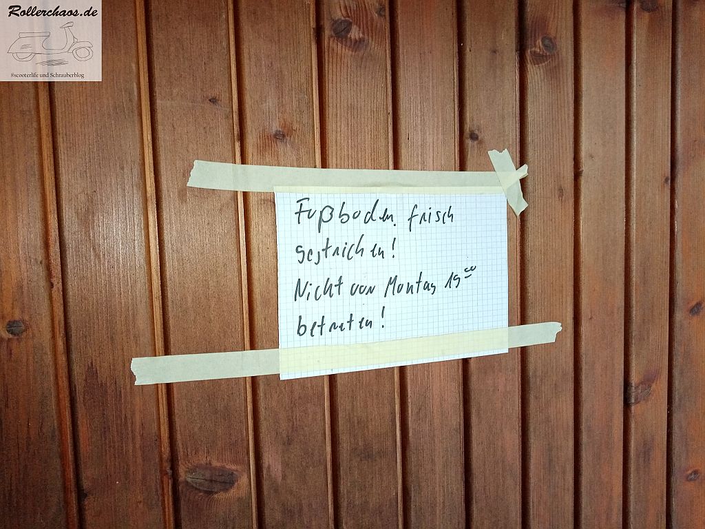 Ich war heute Abend, nach dem Zweitakterstammtisch, noch kurz in der Werkstatt, es lag auf dem Weg und darum war der Kontrollbesuch naheliegend: Getropft hat nichts (wie auch, das ist alles ziemlich dicht geworden) und die erste Schicht ist begehbar trocken, das passt sehr gut. Mal sehen wann ich dazu komme, die zweite aufzutragen. Aber bisher sieht das sehr gut aus.