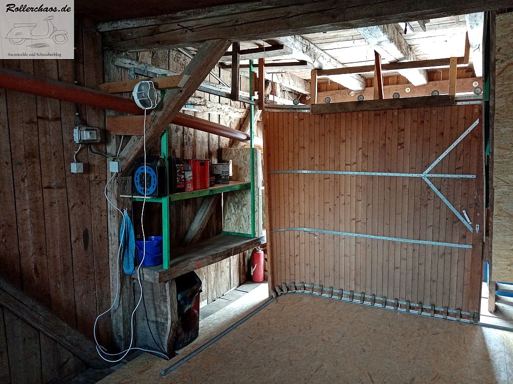 Seit heute ist nebenbei auch das Innentor drin. Mal sehen wann es weiter geht, spätestens Samstag zieht die Werkbank um.