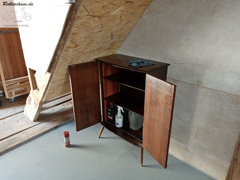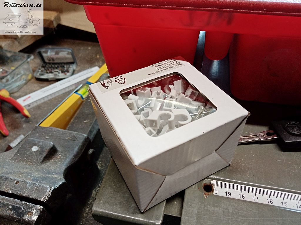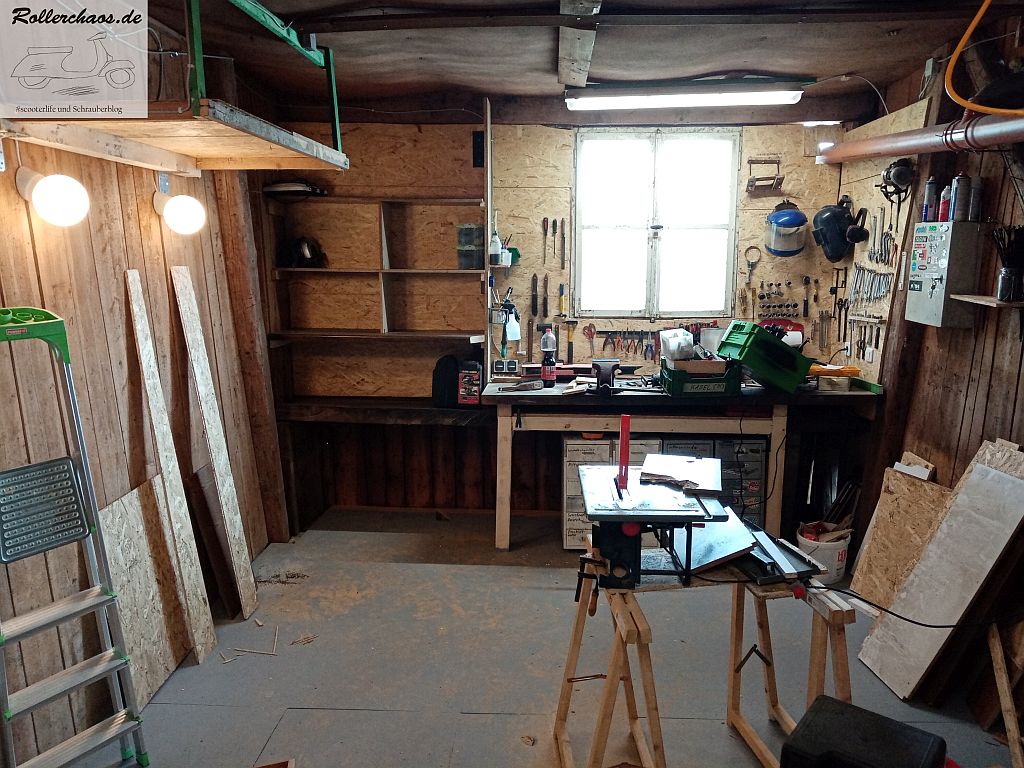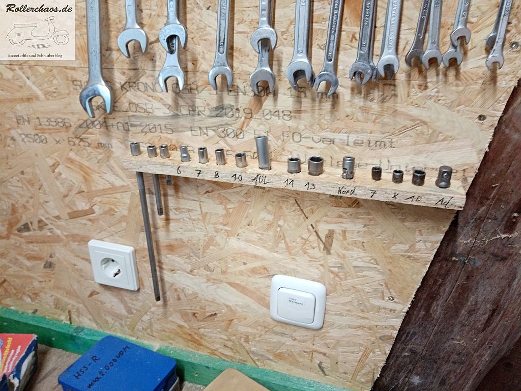 Die Idee mit der Ablage unter der Decke habe ich in einer anderen Werkstatt gesehen und halte sie für absolut genial. Viel besser als deppertes Drahtgetüddel, das ich sowieso nicht abkann.