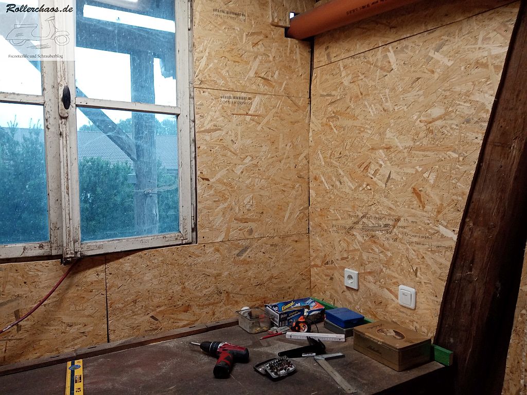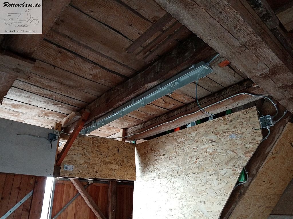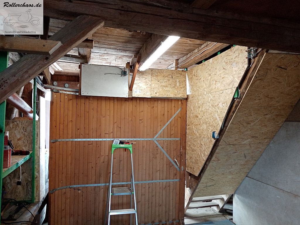 Zum Thema Verkleidungen... Hast du genug Höhe im Gebälk um dir ein Paar alte Schweißdrähte oder so da reinzudängeln? Unten als Haken gebogen kann man die Verkleidungsteile auch ganz schick aus dem Weg hängen.