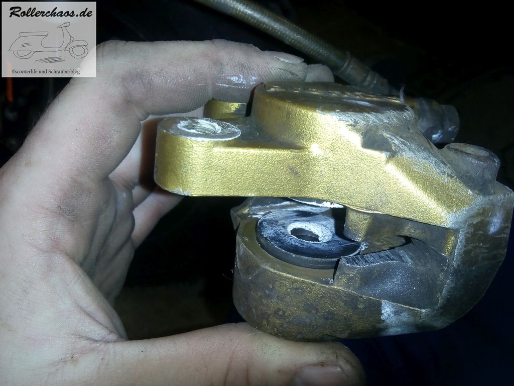 Die Lösung war dann vor Ort die Bremsbeläge raus zu holen und vorsichtig zur Werkstatt zurück zu fahren. Jetzt schleift allerdings die Bremsscheibe am leeren Sattel. Irgendwas ist da gar nicht i.O.
