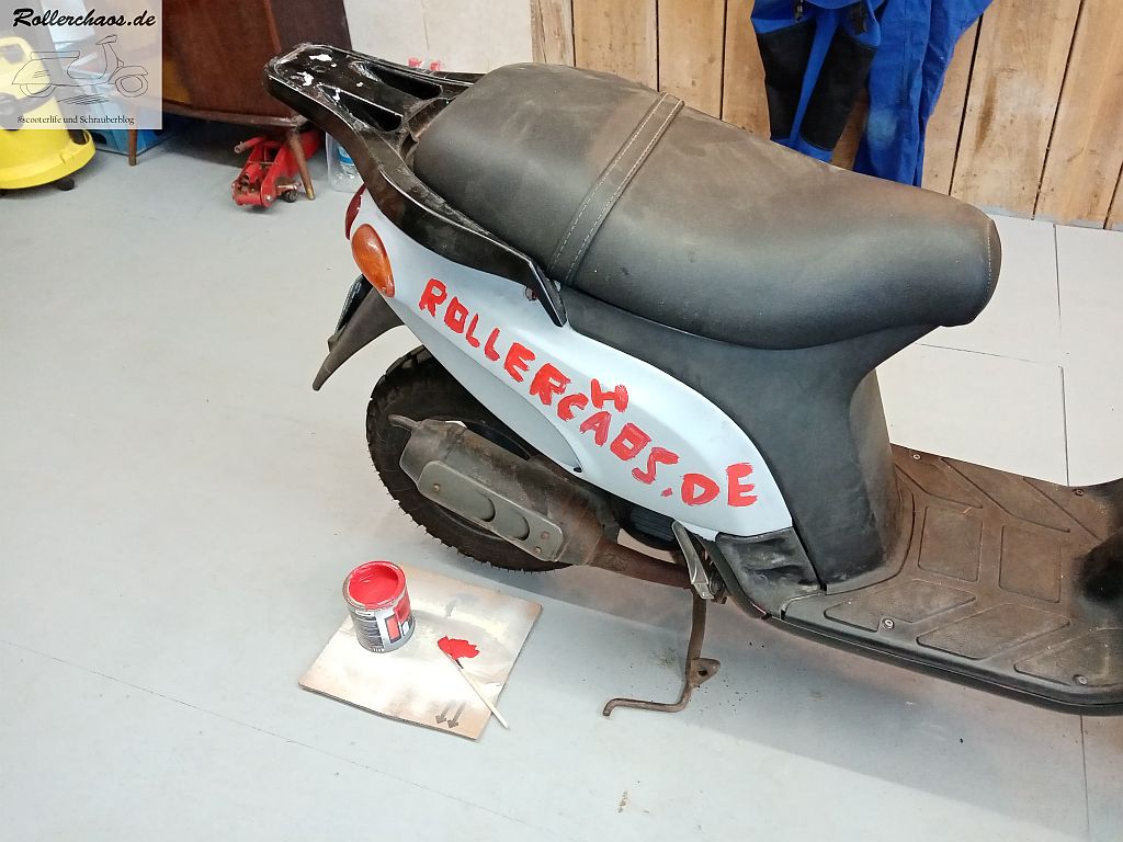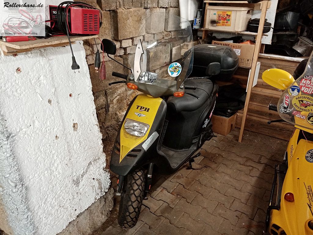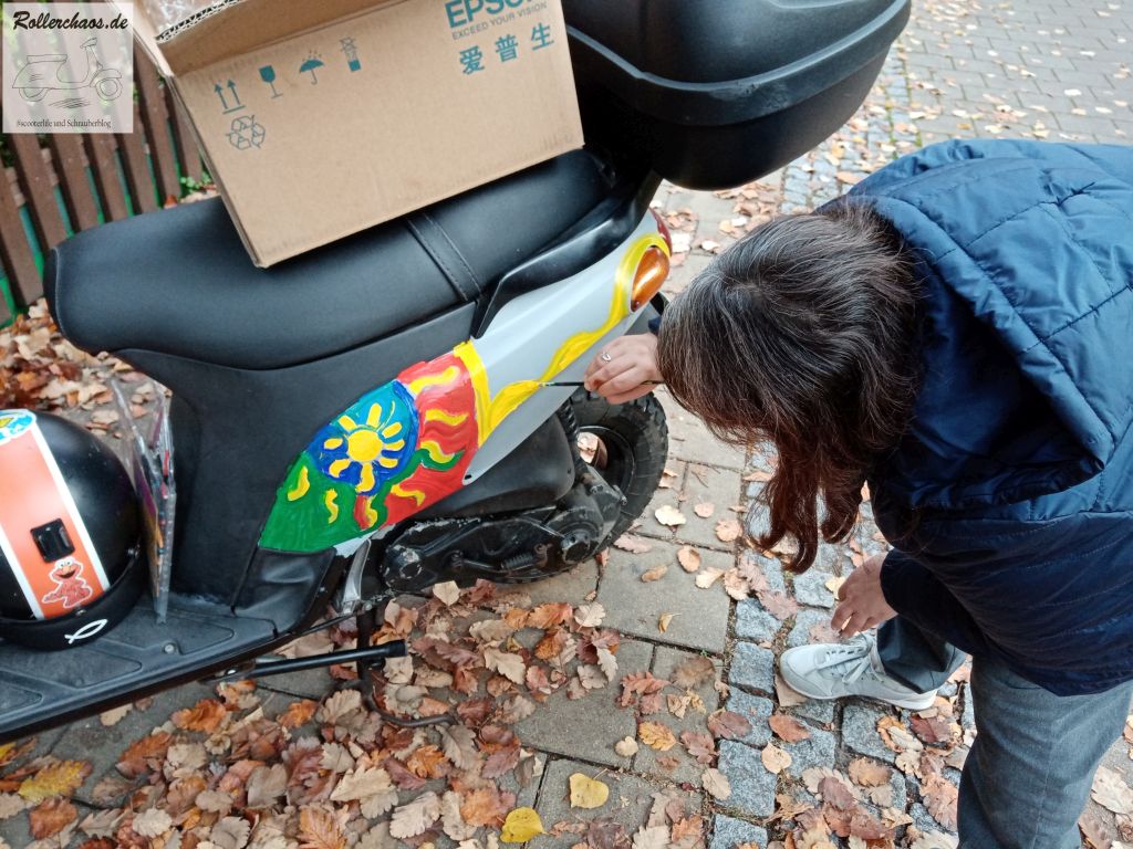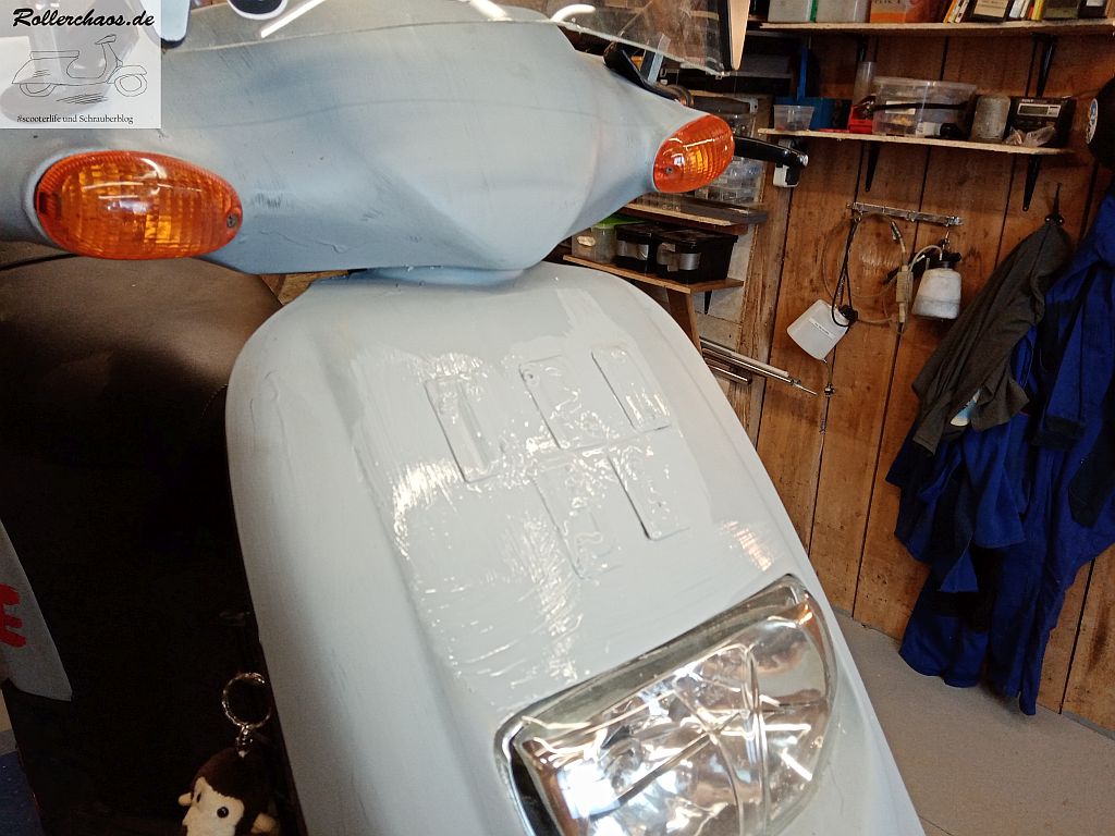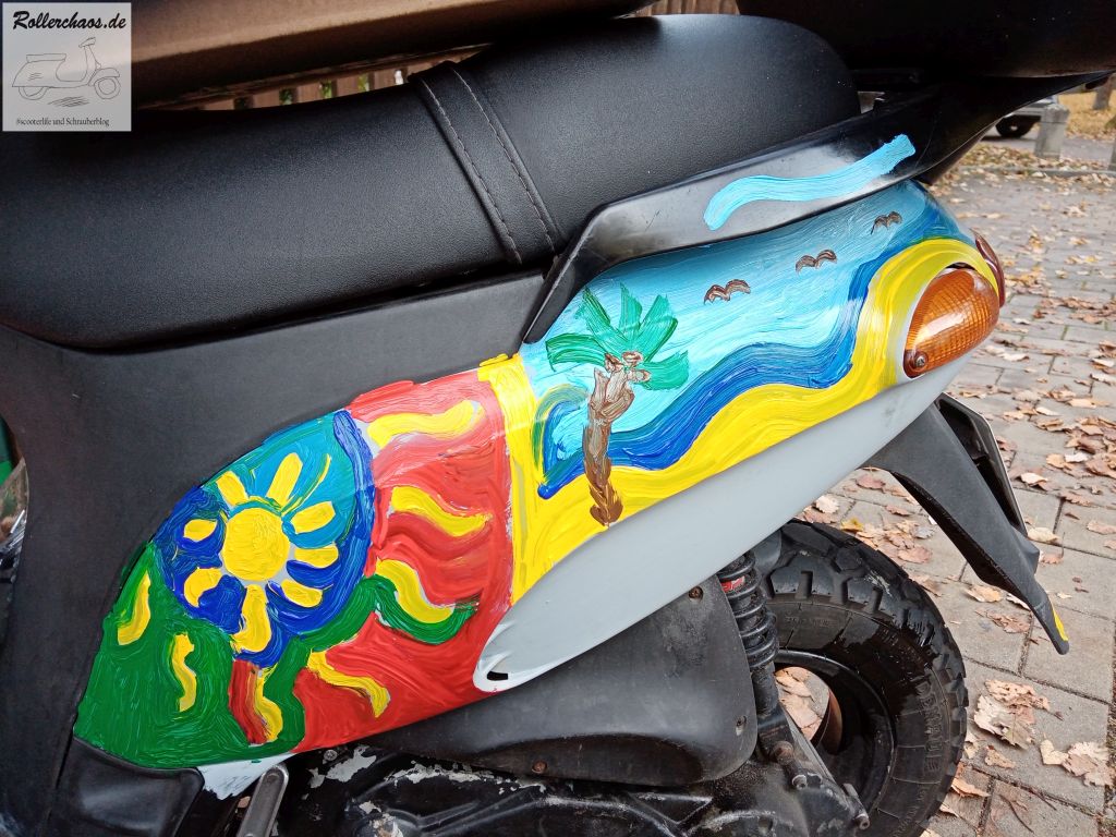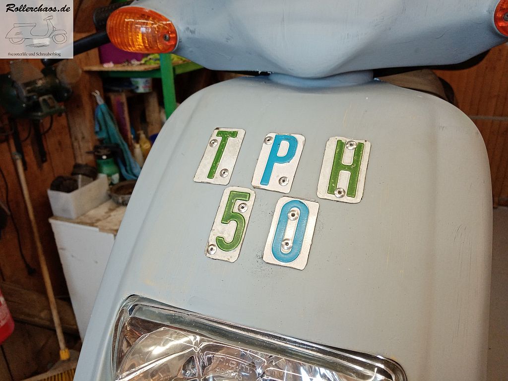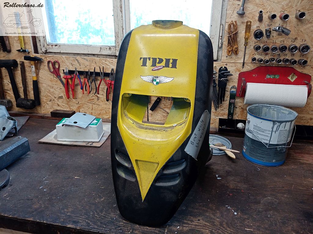 Eigentlich steht dem TPH der mattgraue Anstrich mit Fußbodenfarbe ganz gut. Doch irgendwie ist das langweilig und seien wir ehrlich: TPH im Militärlook gibt es viel zu viele. Außerdem bin ich fest davon überzeugt, dass Rollerfahren Sonnenschein ins Leben bringt.