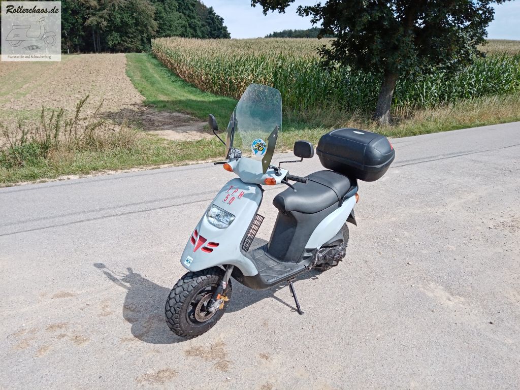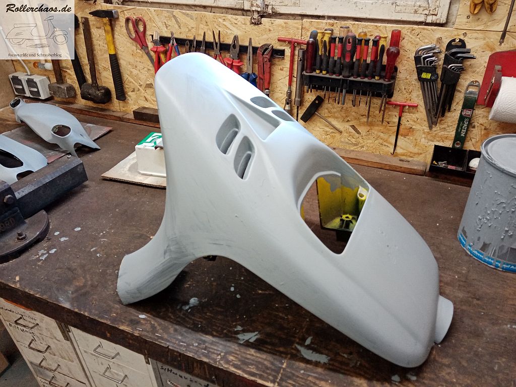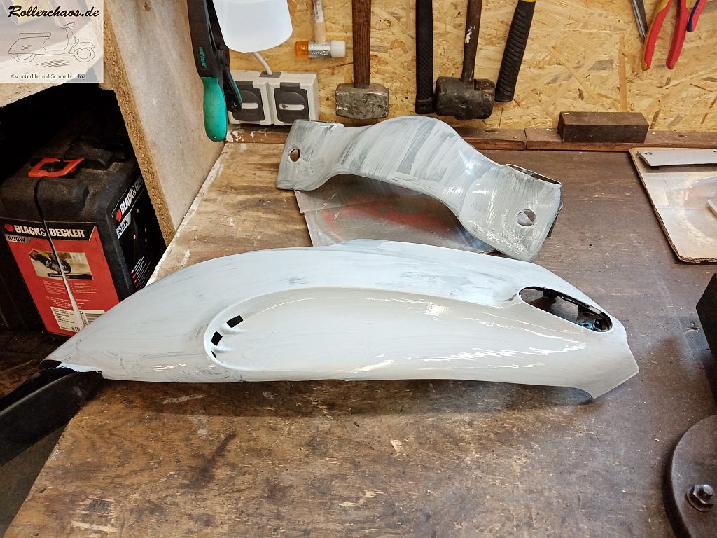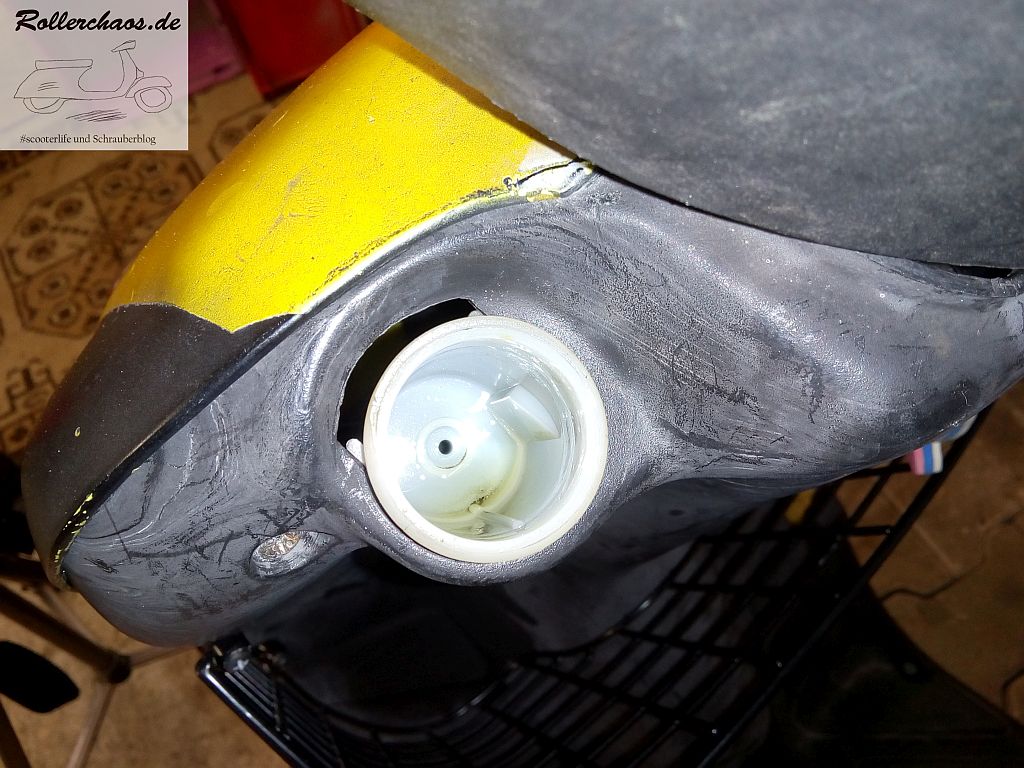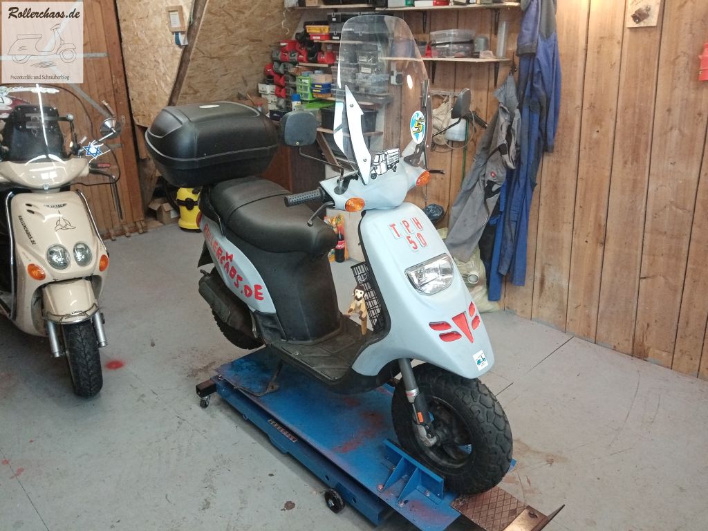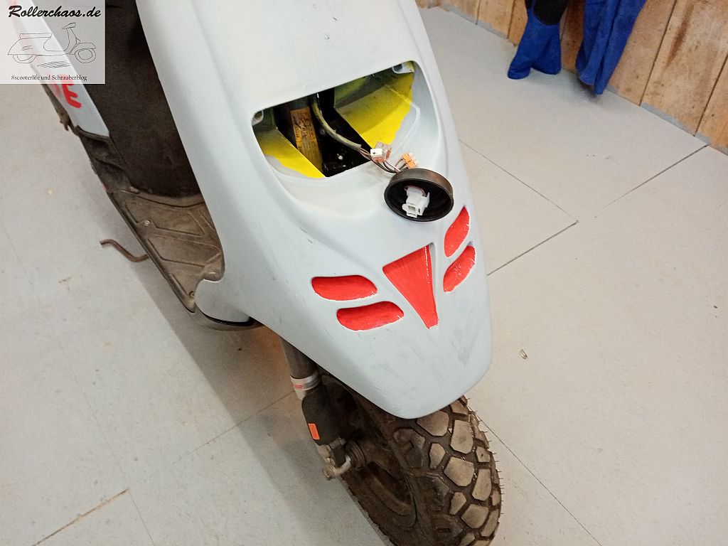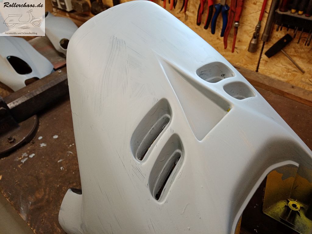 Eigentlich steht dem TPH der mattgraue Anstrich mit Fußbodenfarbe ganz gut. Doch irgendwie ist das langweilig und seien wir ehrlich: TPH im Militärlook gibt es viel zu viele. Außerdem bin ich fest davon überzeugt, dass Rollerfahren Sonnenschein ins Leben bringt.