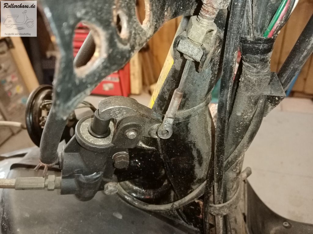 Nun ist die TPH-Bremse bekanntlich nicht ohne Tüken. Neben sauberer Entlüftung muss der Bowdenzug für den "ferngesteuerten" Bremszylinder sehr penibel eingestellt werden. Sonst funktioniert das seltsame Konstrukt nicht richtig. Letztlich ist das nicht besonders schwierig, aber eben zeitaufwändig.