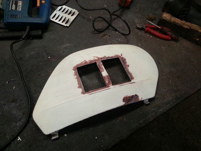 Das ist jetzt der Teil, bei dem die O-Lack-Fetischisten mit Schnappatmung in der Ecke liegen. Hat der Kerl doch tatsächlich zur Stichsäge gegriffen und zwei Löcher in die Seitenhaube geschnitten! Holt Teer, Federn und einen Strick! Schnell!