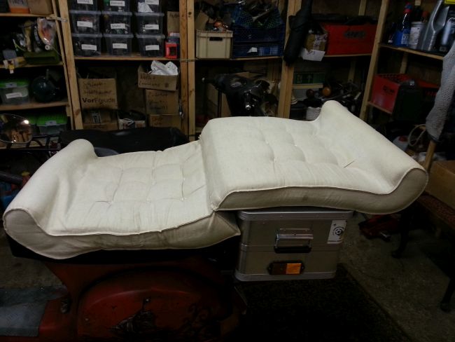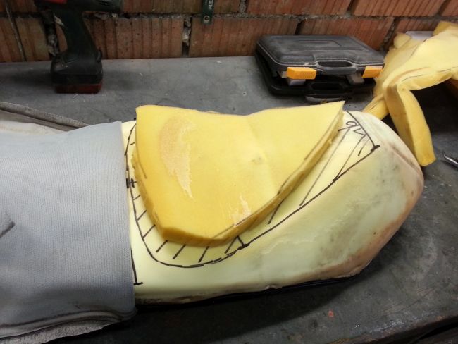 Das sind alles keine wirklich schlechten Ideen, zum Teil ist es auch das was ich bisher eh vor hatte. Um die Form nicht zu verändern, werde ich den Sitzkern wohl horizontal halbieren und mit einer Lage weichen Schaumstoff auffüllen. Material dafür habe ich heute schon gesichert.