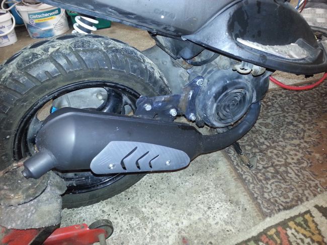 Reklamieren braucht man sowas ja nicht, denn die Händler können auch nichts machen. Selbst wenn ich den Auspuff austauschen lasse, kriege ich doch wieder so einen krummen Brocken. Traurig, aber die extrem schlechte Qualität heute lieferbarer Rollerersatzteile zeigt sich hier wiedereinmal.