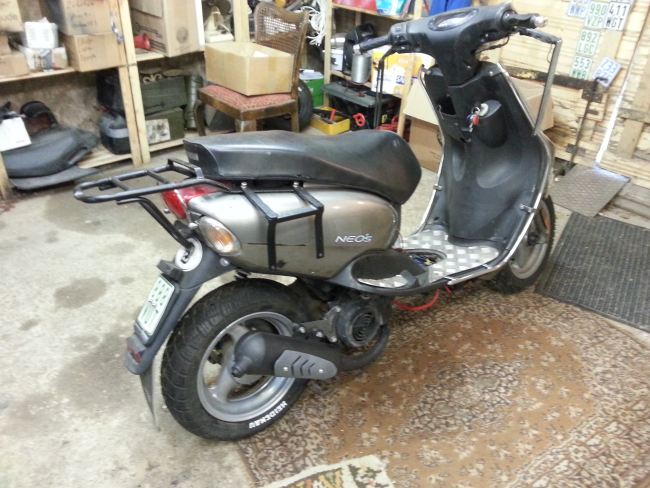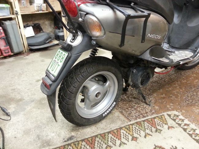 Der Neo`s hat vorne 120/70-12 und hinten 130/70-12. Der Aerox vorne 130/60-13 und hinten 140/60-13 (sie nannten ihn Walze ...). Ich muss einen der beiden originalen Aeroxreifen verwenden, darf aber den Abrollumfang am Hinterrad max. 0,5% vergrößern.