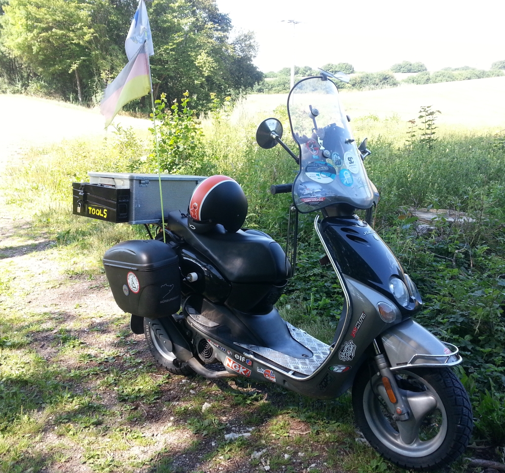 Ach ja: Ich hab heut noch das Zusatzrücklicht am Topcase zerstört, indem ich mit der Ape gegen den geparkten Klingonenkreuzer gefahren bin