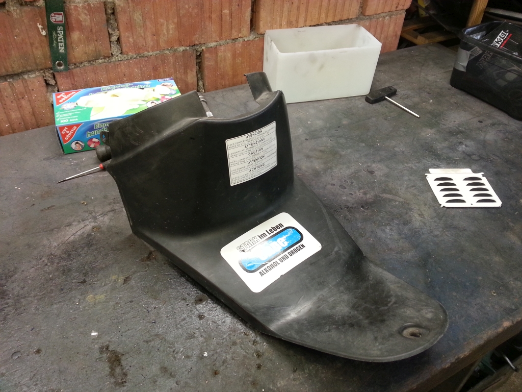 Das ist eh immer wüst, sobald die Frontmaske fehlt sehen die Karren immer aus wie von der Bombe getroffen. Das ist ganz seltsam, aber Roller ohne "Gesicht" sehen einfach immer traurig aus. Darum ist die Frontmaske eigentlich auch immer das erste Trumm, das ich anschraube wenn ich einen Roller zusammenbaue. Das Heck ist für den Look garnicht so wichtig ...