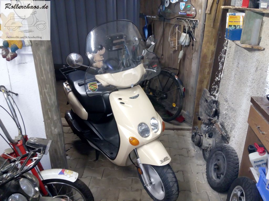 Ohne Windschild fahren ist einfach nicht mein Ding und ein Roller bei mir ohne einfach nicht komplett. Allerdings wurde auch der Ovetto etwas gerupft.