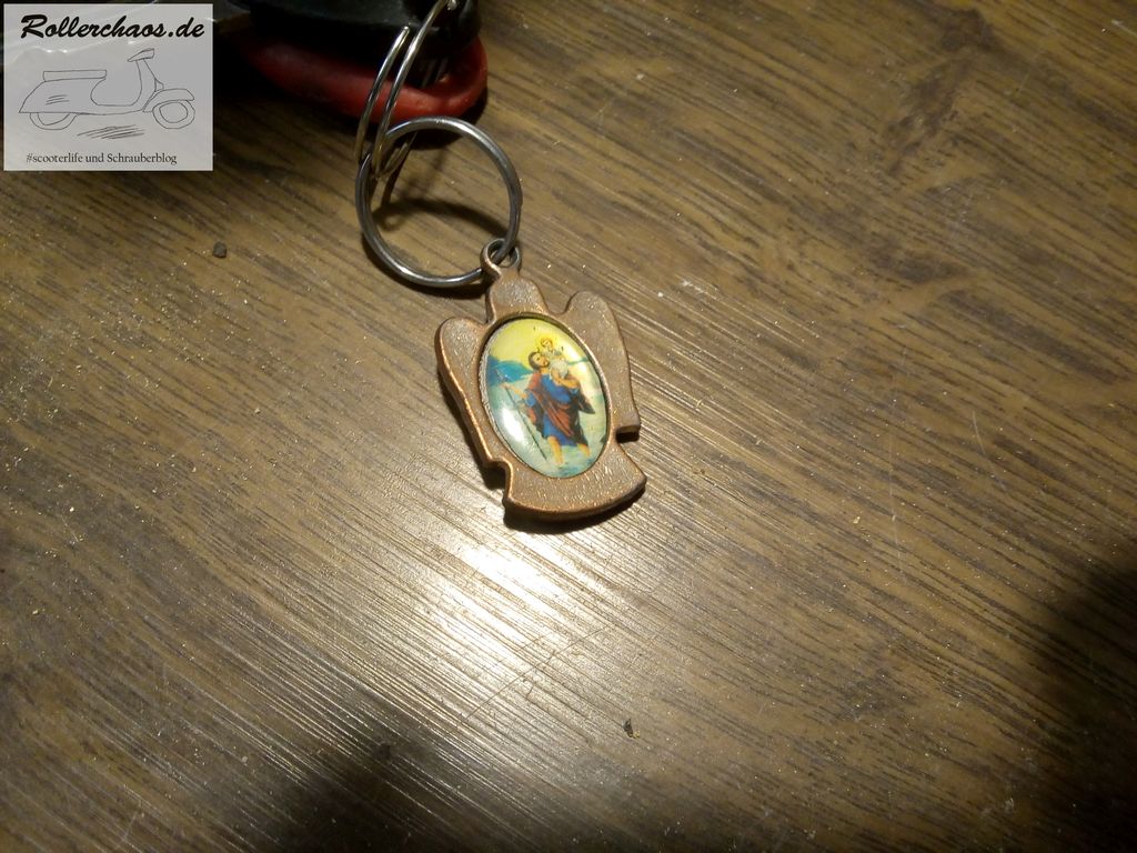 Ein kleines, für mich persönlich sehr wichtiges, Detail war dann noch der Schlüsselanhänger. Der Schutzengel mit dem Bild des heiligen Christophorus war vor vielen Jahren ein Geschenk eines sehr lieben Menschen und seitdem immer mit dem Neos verbunden, jetzt baumelt er am Schlüsselbund des Ovetto.