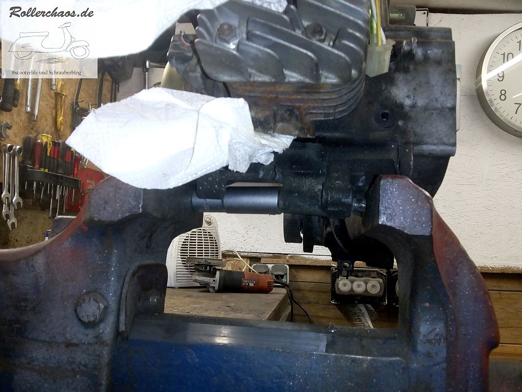 Immerhin war der Motor somit bereit für den Wiedereinbau in den Roller. Ich wollte doch zu gerne wissen, ob das Teil auch wieder anspringt. Hauptgrund für den Ausbau war ja der Ausfall des Motors, nicht der defekte Ständer.