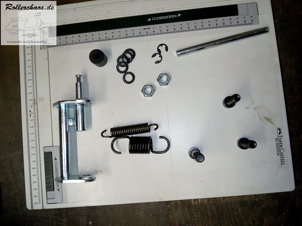 Der Reparatursatz für den Hauptständer war ja gestern schon in der Post. Diese nervige Sache sollte also heute Abend erledigt werden.