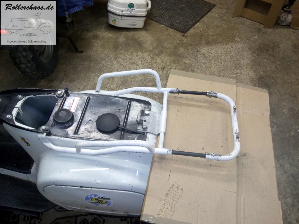 Auf lange Sicht muss ich entweder einen komplett neuen Träger bauen, idealerweise ohne die seitlichen Rohre, oder nach einer passenden käuflichen Lösung suchen. Mal sehen was es wird, fürs Erste taugt das Provisorium.