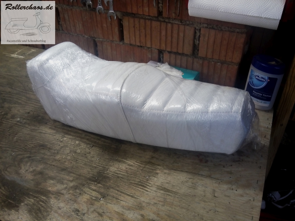 Die Yankeesitzbank war nun aus verschiedenen Gründen gut ein Jahr lang bei Maik gelegen. Denn dieser hatte sie bei einem Bekannten neu beziehen lassen. Die Monobank ist zwar auf der Yacht original, passt aber überhaupt nicht zum Styling. Abgesehen davon, dass sie einfach nur völlig fertig ist. Beim Slooowriderstreffen in Ilmenau hat mir Maik aber die Yankeebank zurück gegeben, Zeit sie zu montieren.