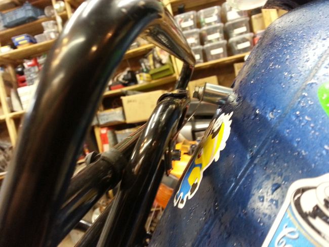 Kenner werde nes erkennen, um die Scheibe zu befestigen habe ich neue Spiegel gebraucht. Sind alte Zubehörfetzen für den Schiebfight, in den Teilen sieht man sogar was. Also deutlich besser, als der Feigenblatt-F1er der vorher dran war.