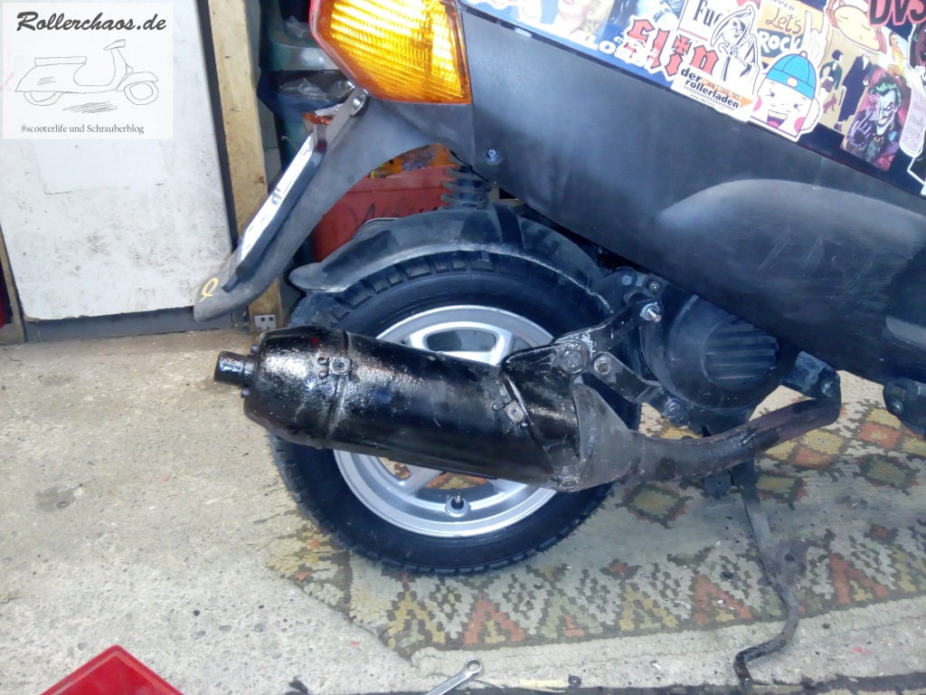 Grundsätzlich war die Montage kein Problem, man sieht halt deutlich, dass dieser Auspuff eigentlich für einen viel größeren Roller gedacht ist. Aber er saß fest und war dicht. Die anschließende Probefahrt verlief vielversprechend und so ging es dann recht gut gelaunt auf den Weg nach Hause.