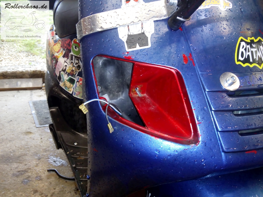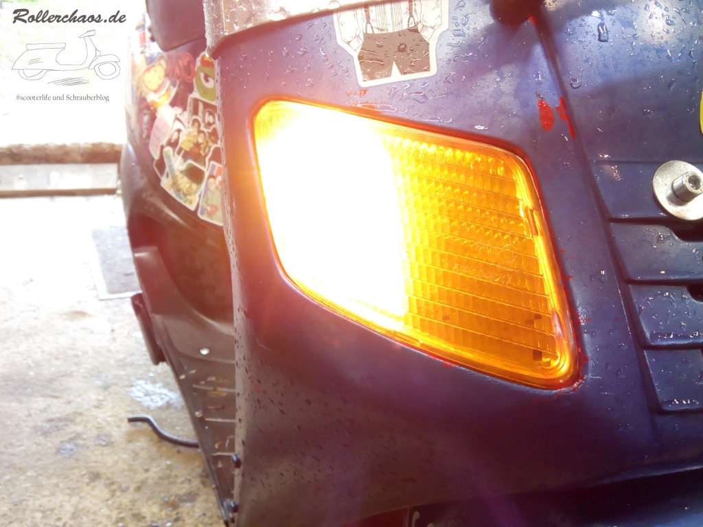 Bei der gestrigen Heimfahrt war mir außerdem aufgefallen, dass der rechte Frontblinker nicht mehr tat. Keine große Sache, der Zip ist in dieser Hinsicht einer der angenehmsten Roller da die Frontmaske nicht demontiert werden muss.