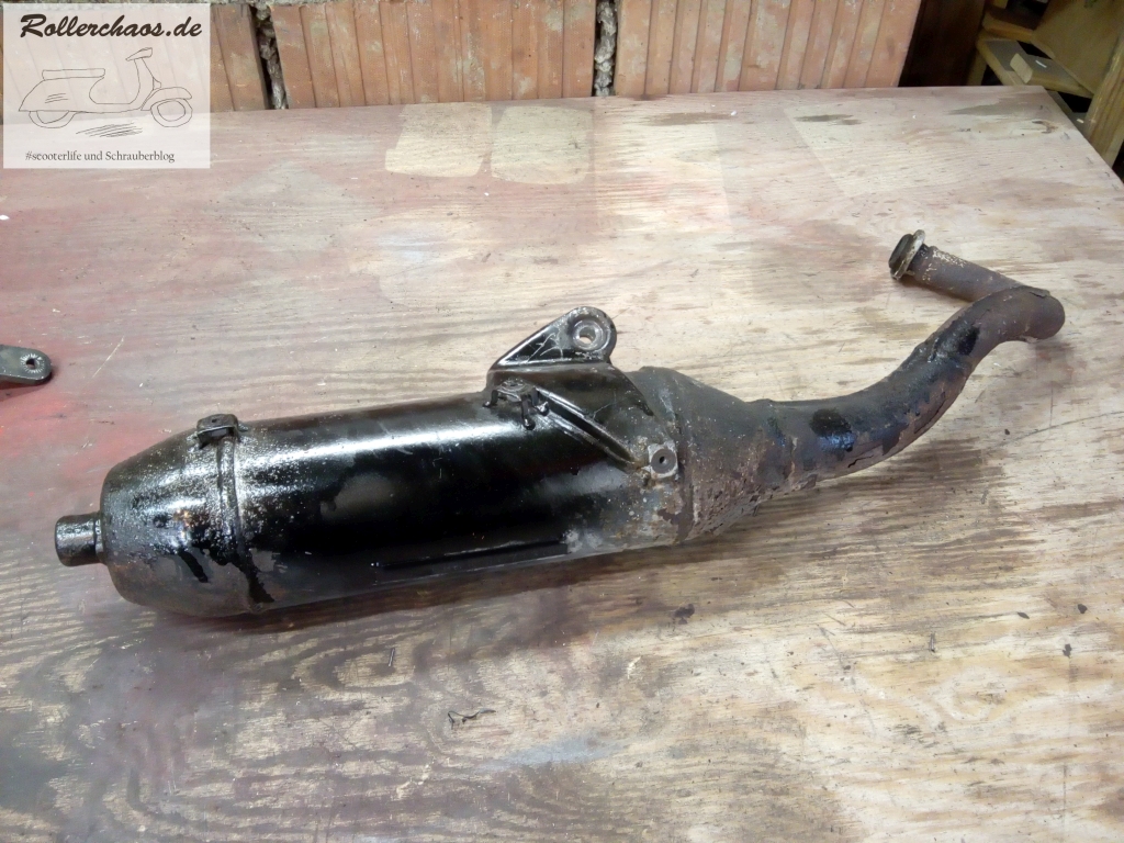 Einen besseren, gebrauchten Endschalldämpfer habe ich heute organisieren können. Dieser ist jetzt am Zip, wie er sich fährt habe ich noch nicht wirklich ausprobiert, zu mehr als einigen hundert Meter Testfahrt hatte ich bei Dauerregen keine Lust, schön leise ist der Roller aber wieder.