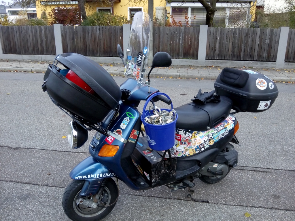 Vorläufig wird aber noch ohne Frontaufbau gefahren, erstmal weitere Ideen und Material sammeln. Dann werde ich das Schritt für Schritt zurechtmachen und den Roller über den Winter im laufenden Betrieb verändern. Aktuell liegt die Priorität aber auf fahren und den Klingonen sowie den Baron fixen, das ist erstmal wichtiger.