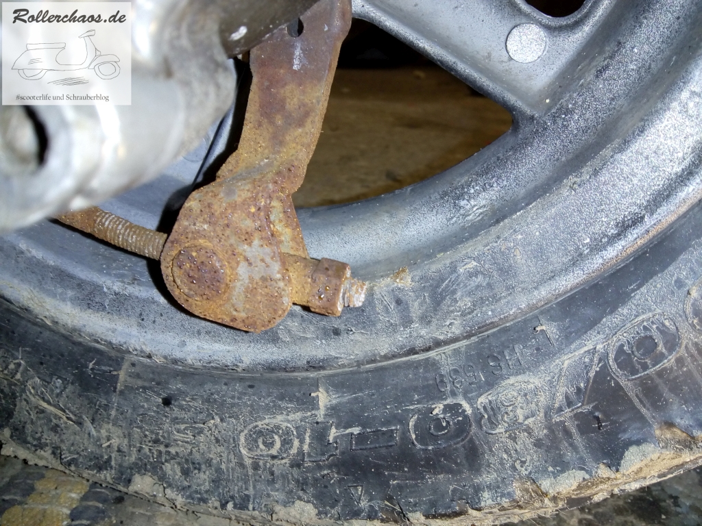Nichst mehr zu konservieren gabs hingegen beim Hauptständer. Dieser war schon vor dem Winter nicht mehr sonderlich gut erhalten, der Wintereinsatz hatte ihm jetzt endgültig den Rest gegeben. Sicher gestützt hat er den Zip nicht mehr, weshalb er heute ersetzt wurde.