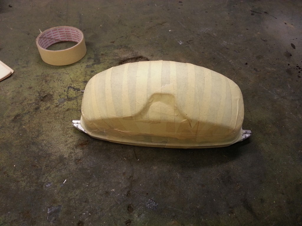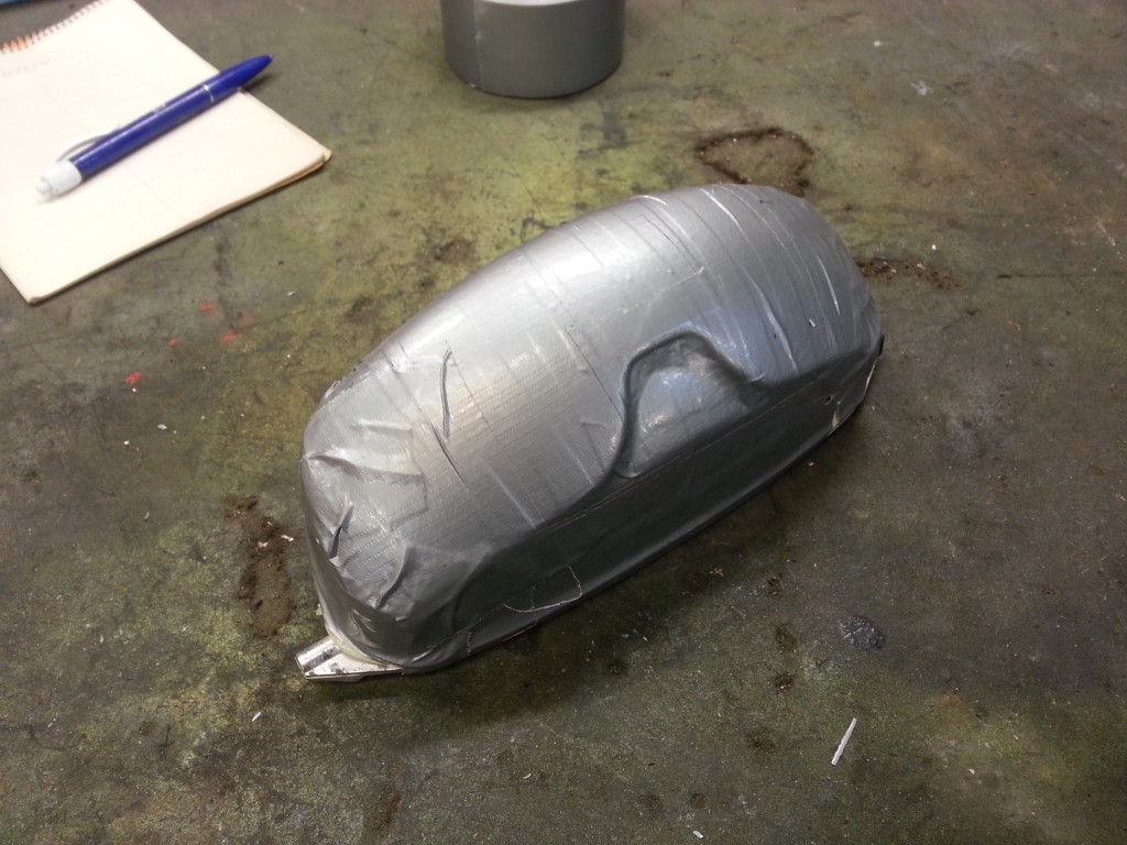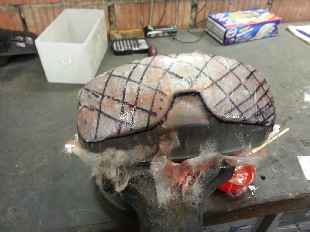 Auf das eingefettete Panzertape habe ich dann Glasfasermatten und Kunstharz aufgetragen.