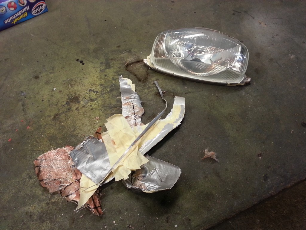 Das ist jetzt nur ein Platzhalter um ein Gefühl für die Proportionen zu bekommen, aber so wird klar, wohin die Reise gehen soll. Außerdem sieht man das Problem der Idee: der Scheinwerfer wird verdeckt.