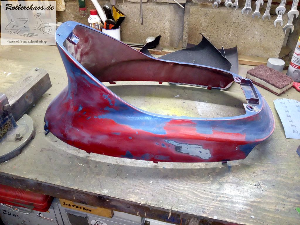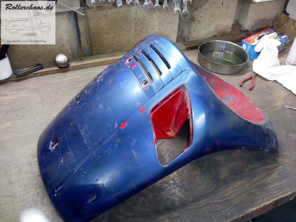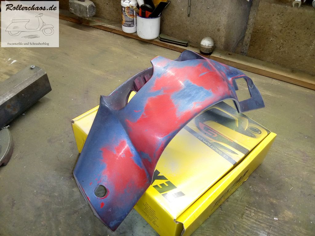 So ist dann auch gut zu erkennen, warum damals die ganzen Sticker drauf kamen. Meine Ansprüche an Rollerlackierungen sind nun wahrhaft gering, aber das geht nun gar nicht.