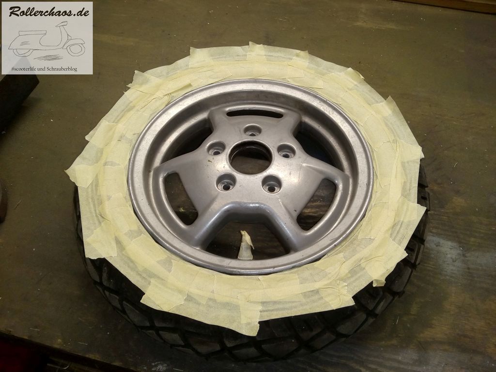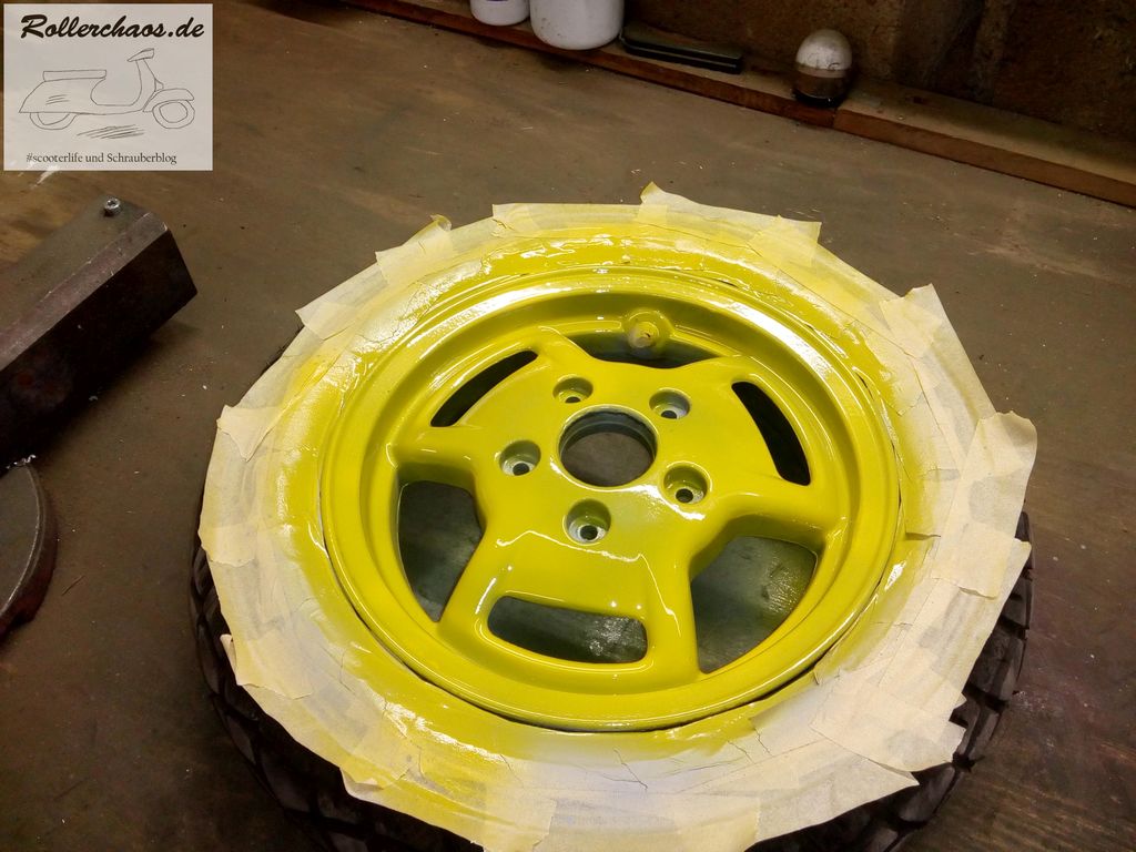 Während das Zeug trocknete habe ich mich noch um die Vorderradfelge gekümmert.