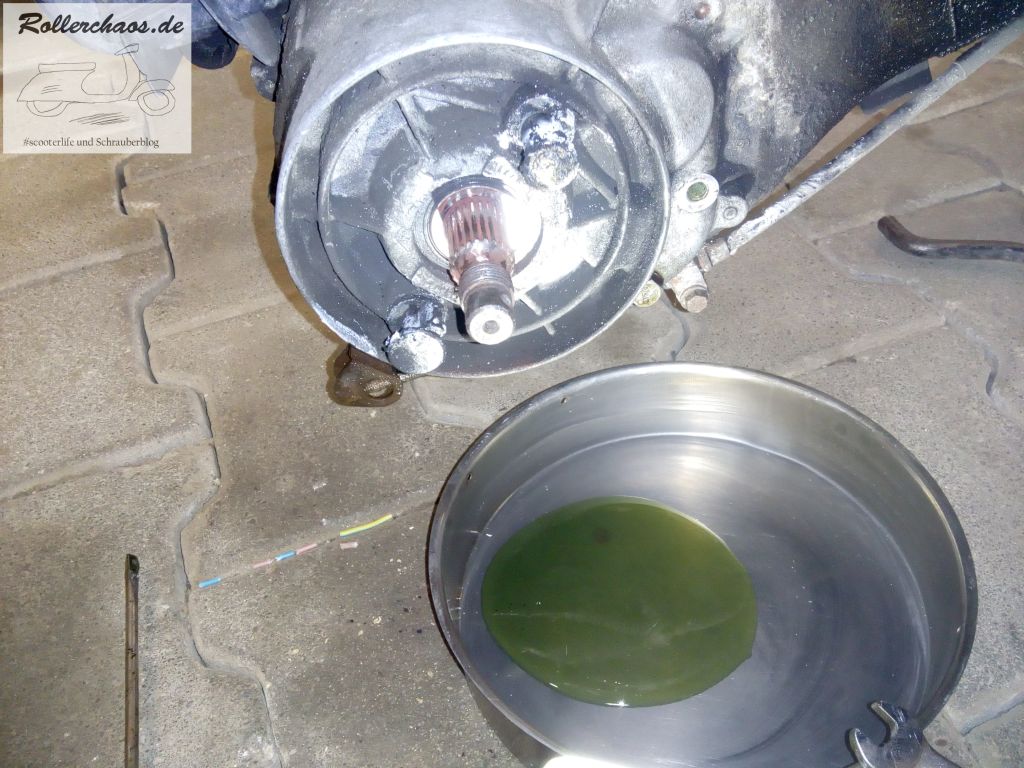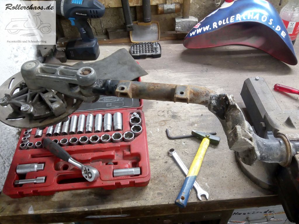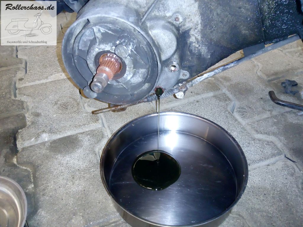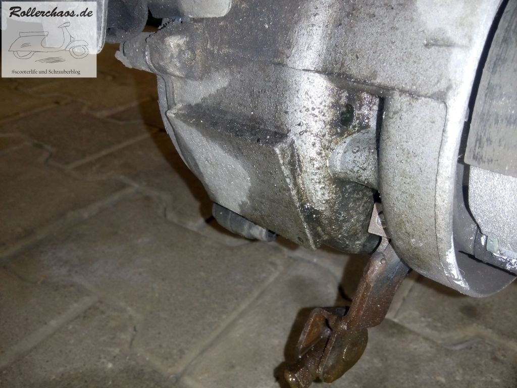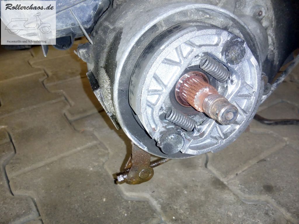 Bei den alten Piaggio-Automatikrollern muss das Hinterrad zum Getriebeölwechsel sowieso raus, insofern war die Gelegenheit günstig.