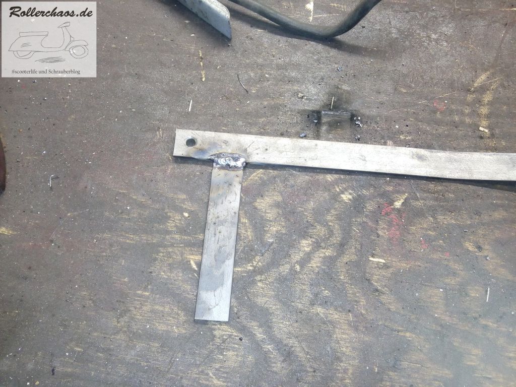 Aus einem Reststück entstand dann der angeschweißte Ausleger, an den ich den Fahrradflaschen-Halter anschrauben kann.