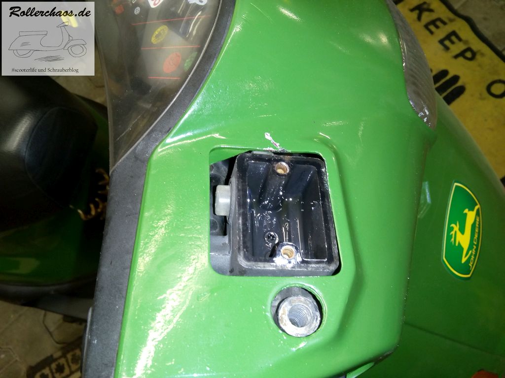 Nicht so bleiben kann der völlig verwanzte Variodeckel des Rollers. Eigentlich wollte ich mich schon im Zuge der Neulackierung darum kümmern, aber das scheiterte seinerzeit am Zeitmangel. Jetzt ist aber etwas Zeit dafür, auch weil ich den Ersatzdeckel gefunden habe.