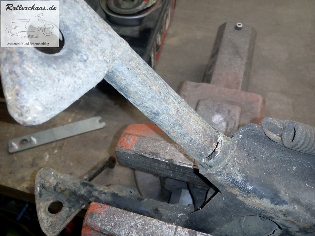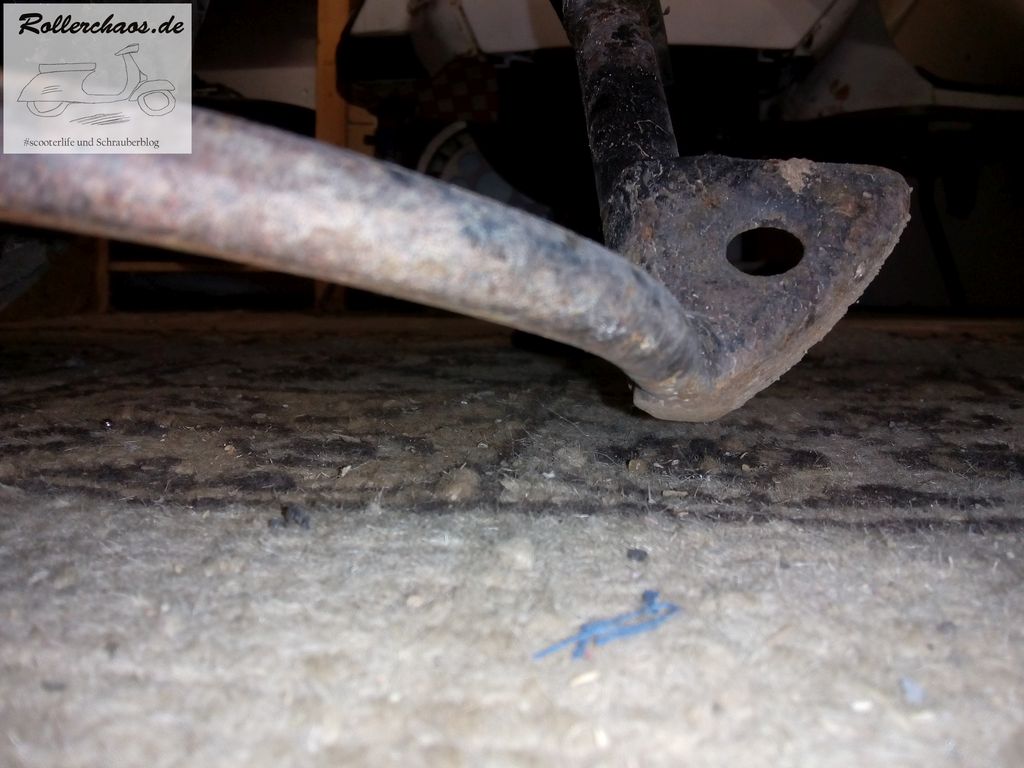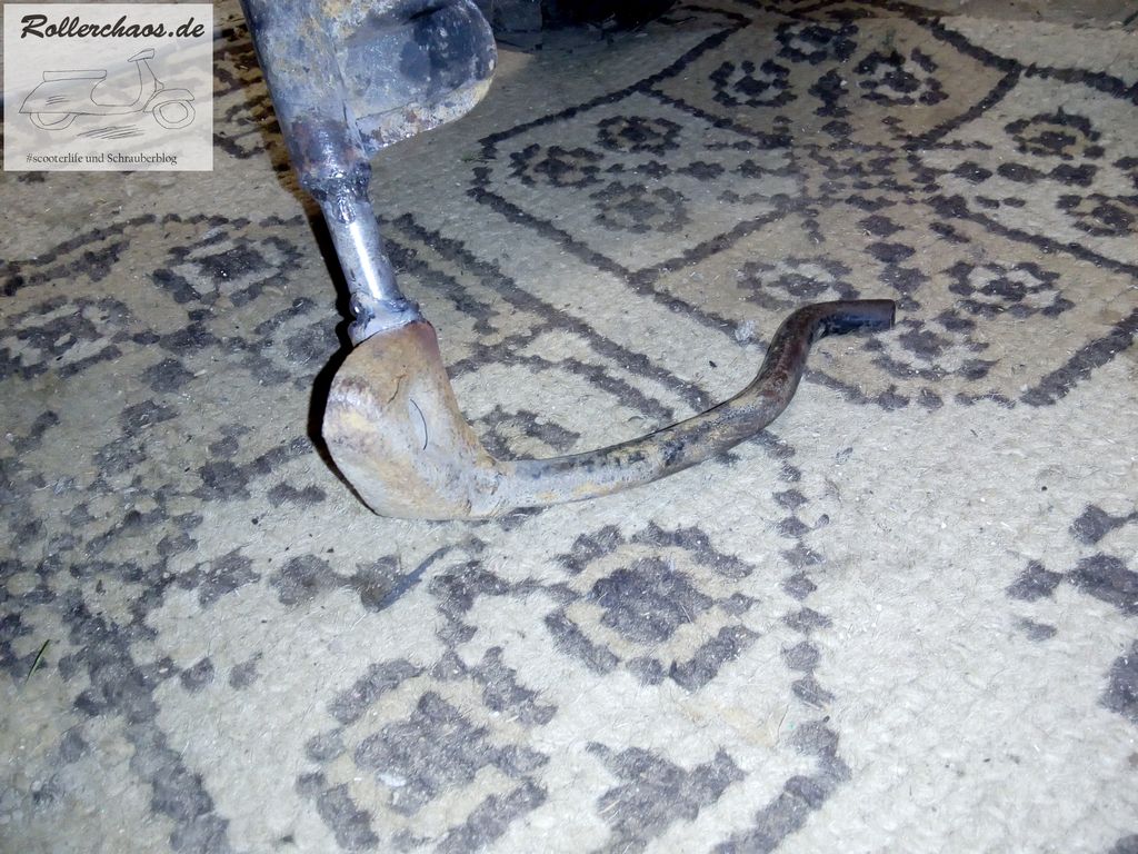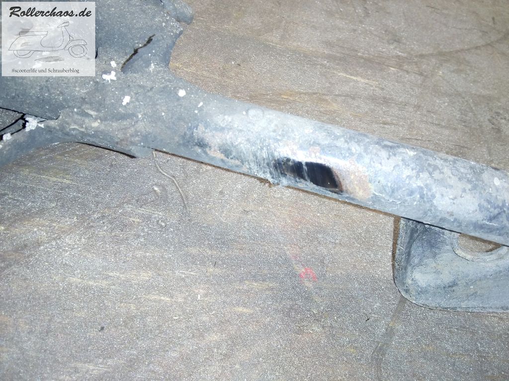 Nach der Demontage des Ständers, die ja bei diesen alten Piaggios denkbar einfach ist, war dann die Schleifstelle schön zu sehen.