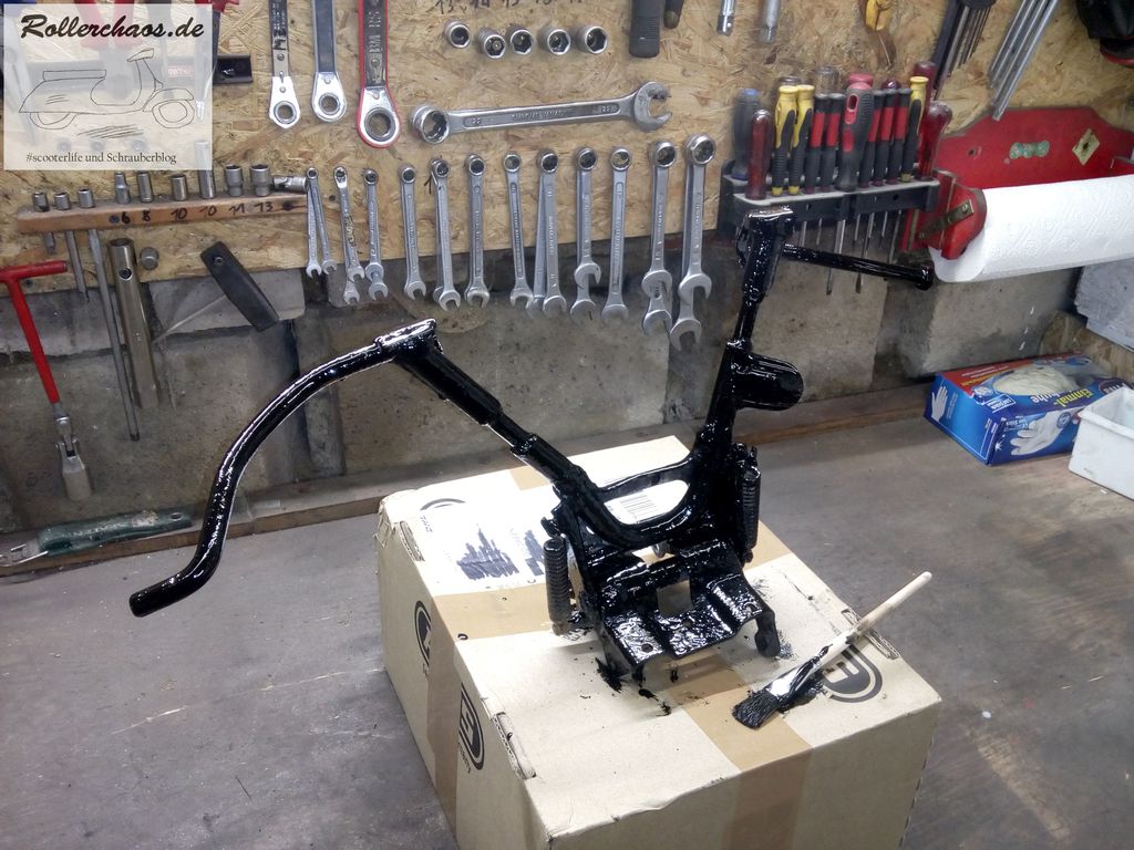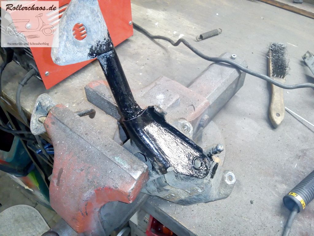 Zuletzt kam der Hauptständer dann nochmal runter und bekam einen Anstrich mit Chassislack. So sieht das Teil dann auch wieder ordentlich aus.