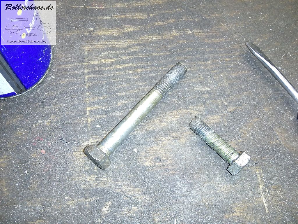 Irgendwie haben mich die versifften Schrauben gestört. Rostig sind sie nicht, nur total mit uraltem Kleister verschmiert.
