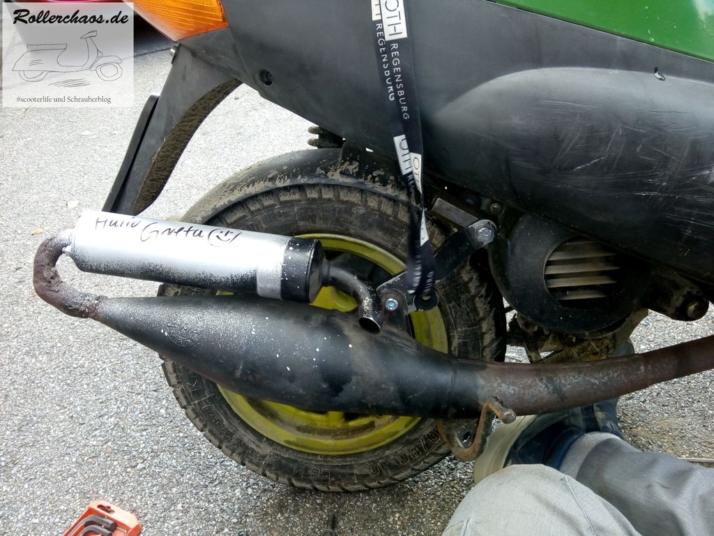 Der Auspuff ist fest und dicht, mehr brauche ich nicht. Das muss letztlich nur für eine Fahrt zur Werkstatt halten.